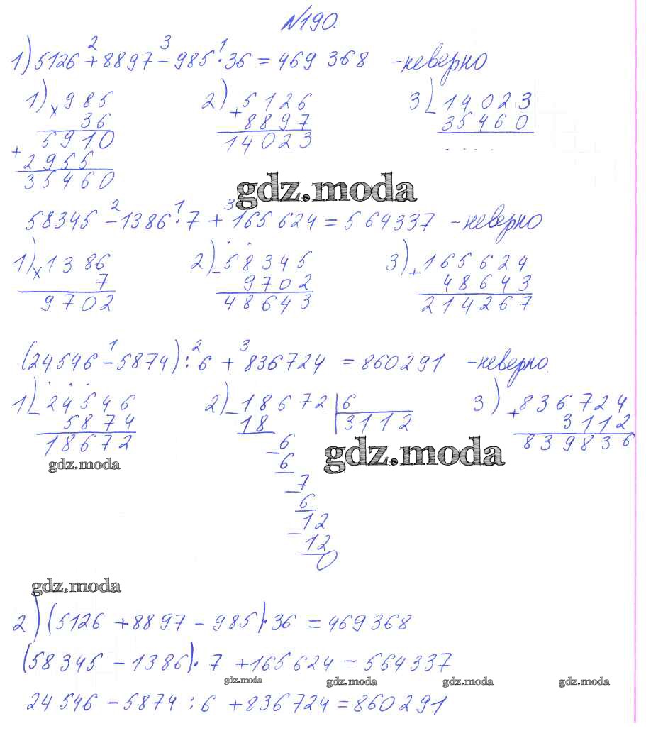 ОТВЕТ на задание № 190 Учебник по Математике 4 класс Аргинская УМК