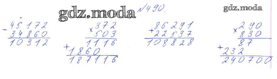 ОТВЕТ на задание № 490 Учебник по Математике 4 класс Аргинская УМК