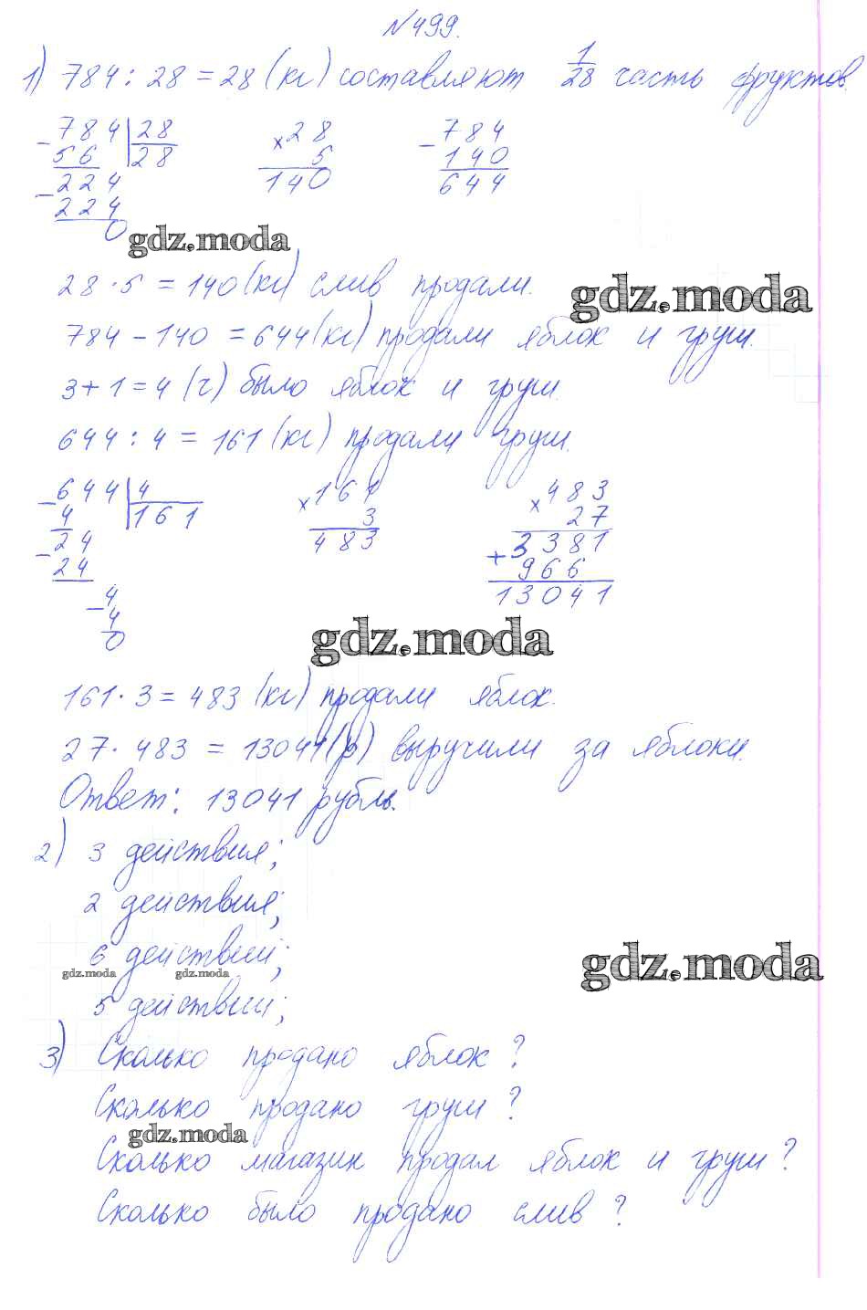 ГДЗ решение к заданию № 499 Математика 4 класс Аргинская И.И. Фёдоров 2014 Часть 1, Часть 2 ФГОС бесплатно на гдз.мода!