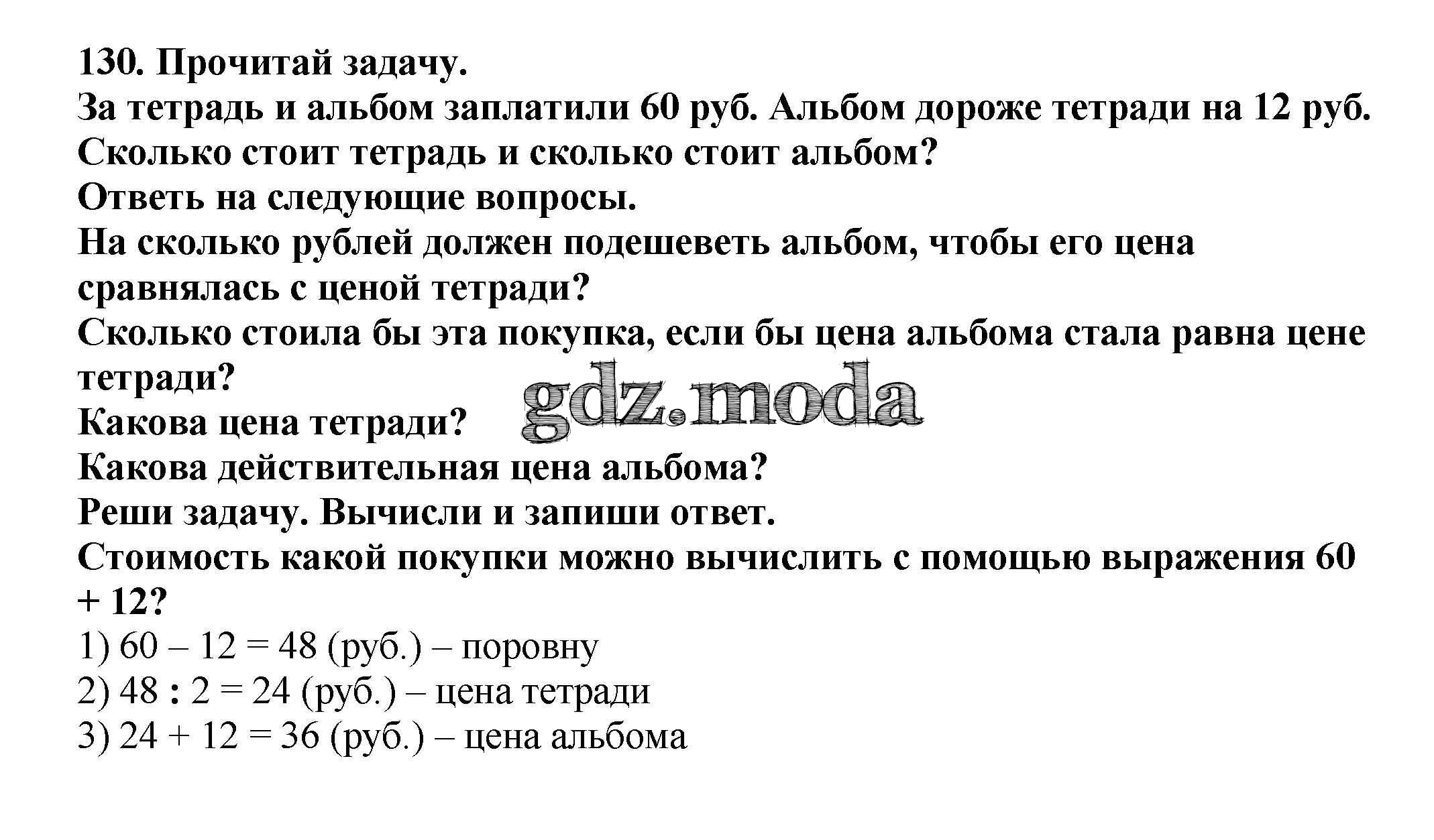 ОТВЕТ на задание № 130 Учебник по Математике 4 класс Чекин Перспективная начальная школа