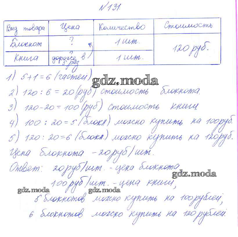 ОТВЕТ на задание № 131 Учебник по Математике 4 класс Чекин Перспективная начальная школа