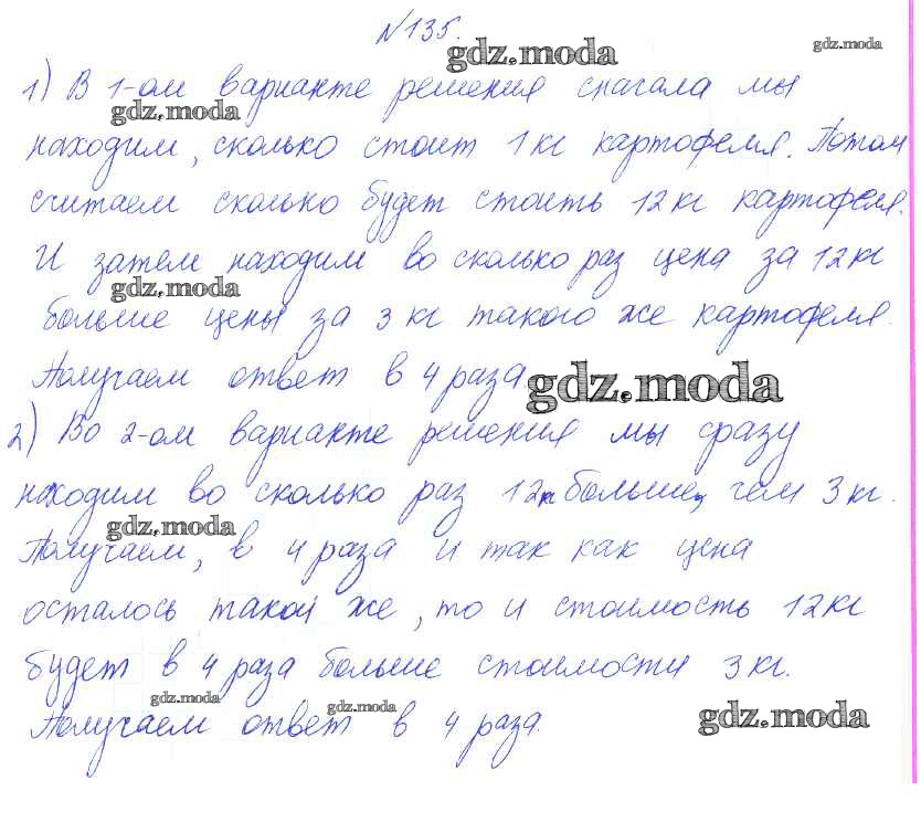 ОТВЕТ на задание № 135 Учебник по Математике 4 класс Чекин Перспективная начальная школа
