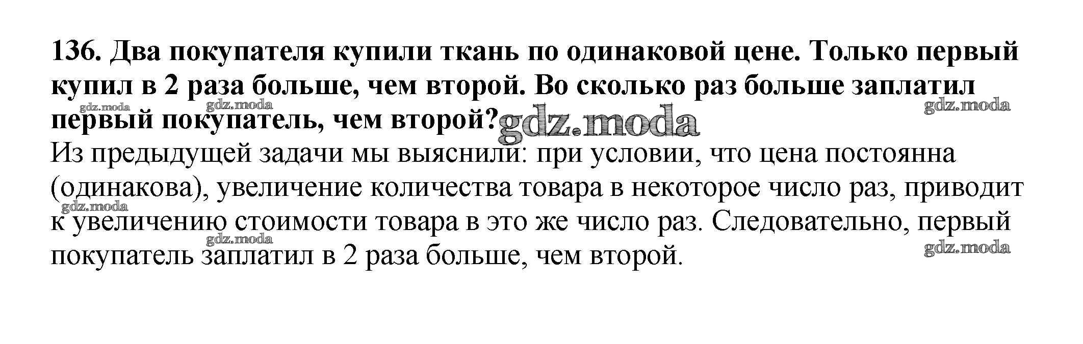 ОТВЕТ на задание № 136 Учебник по Математике 4 класс Чекин Перспективная начальная школа