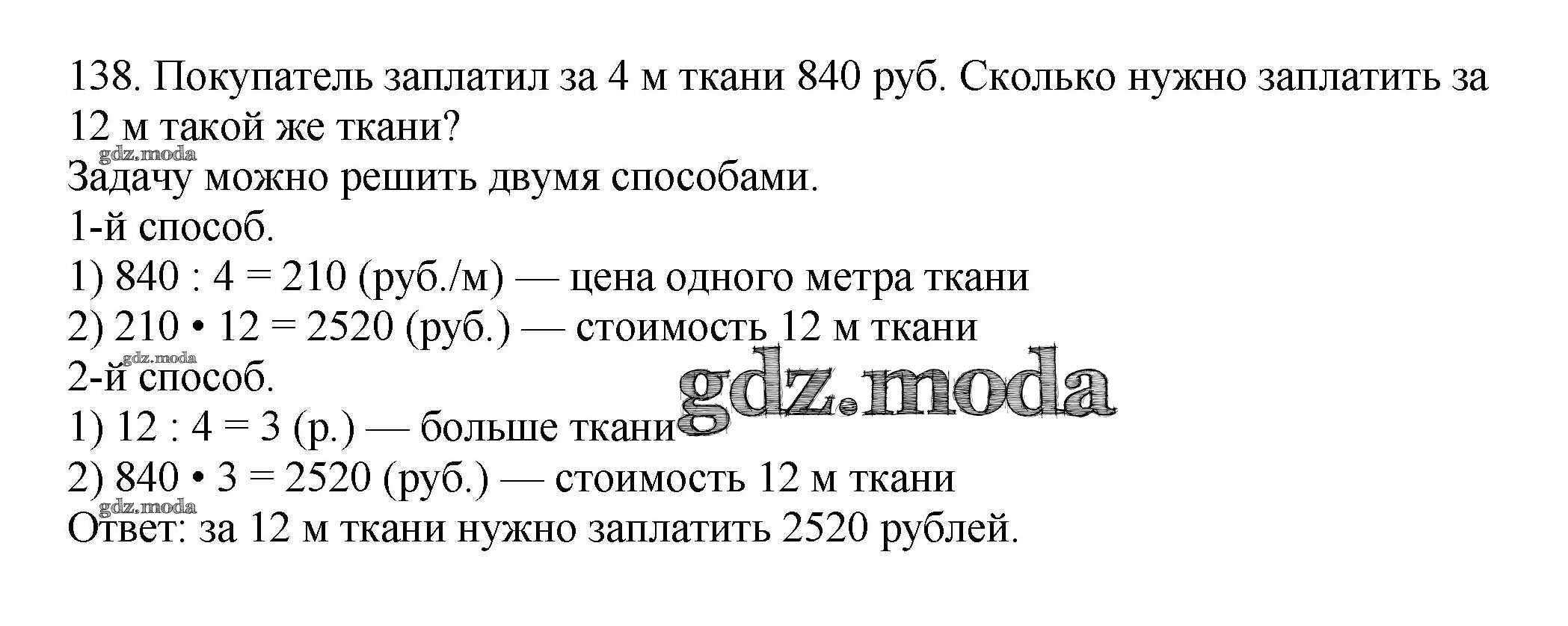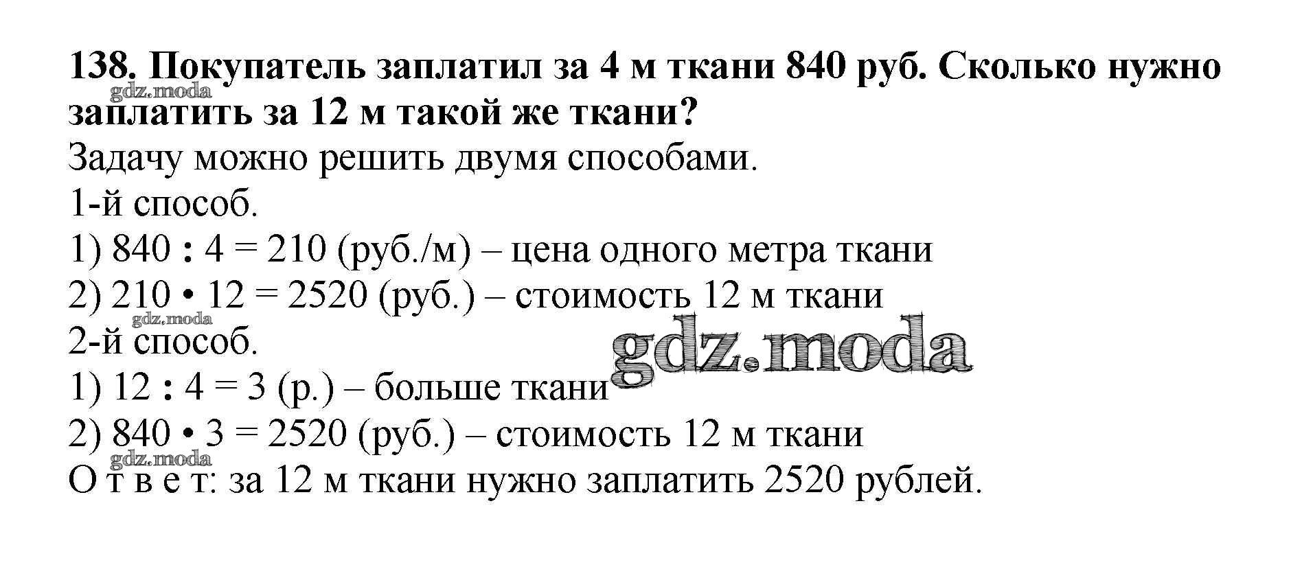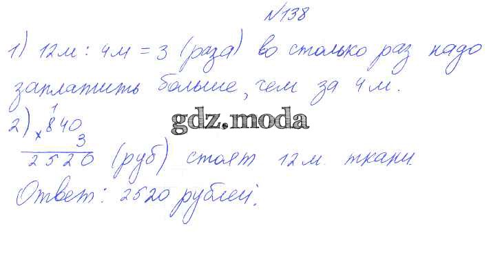 ОТВЕТ на задание № 138 Учебник по Математике 4 класс Чекин Перспективная начальная школа