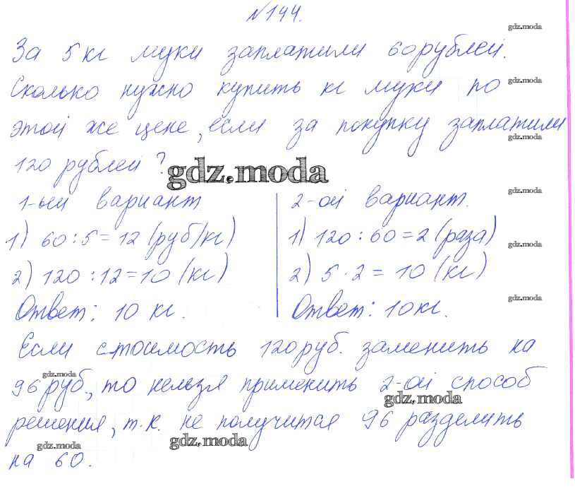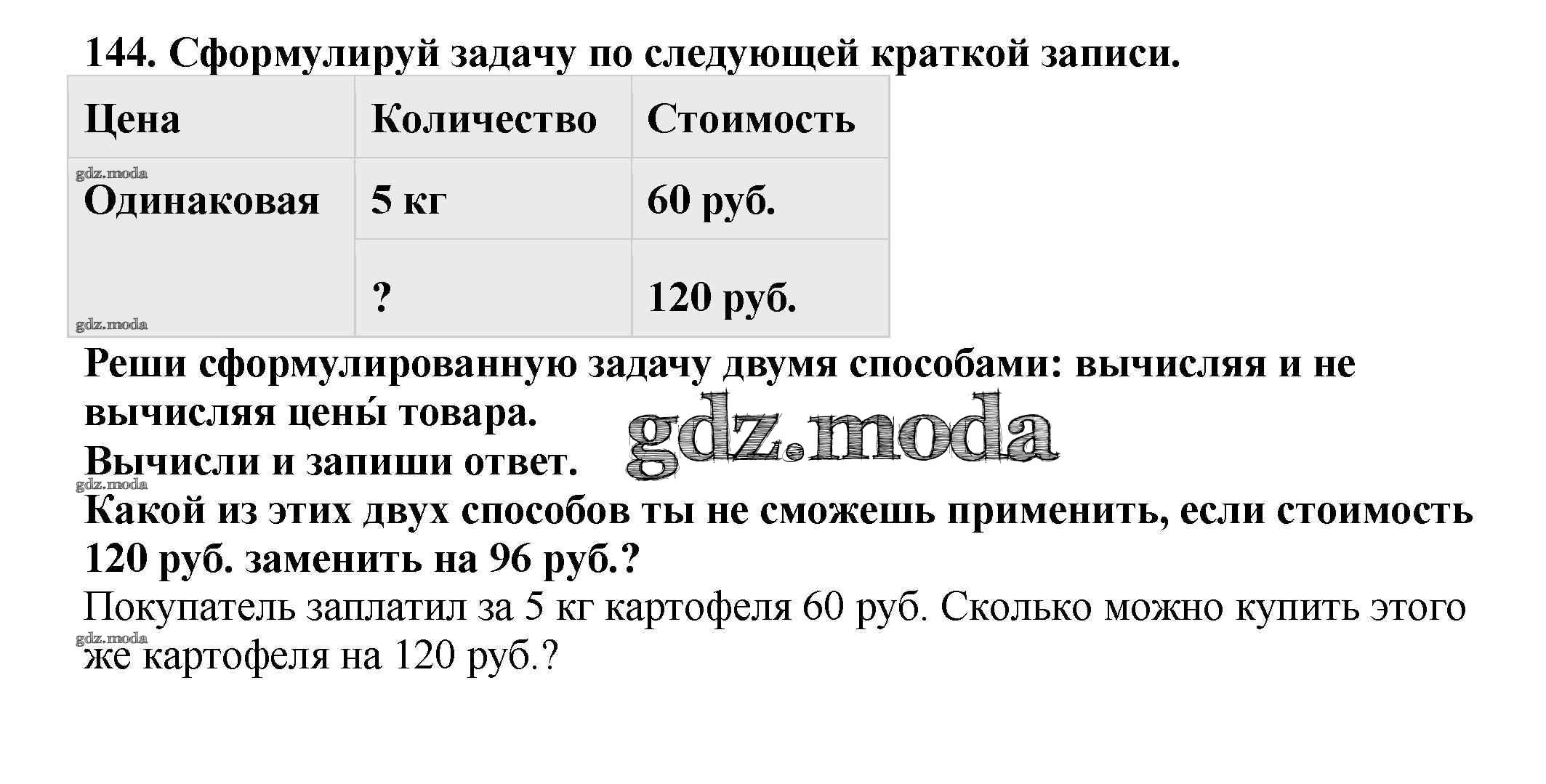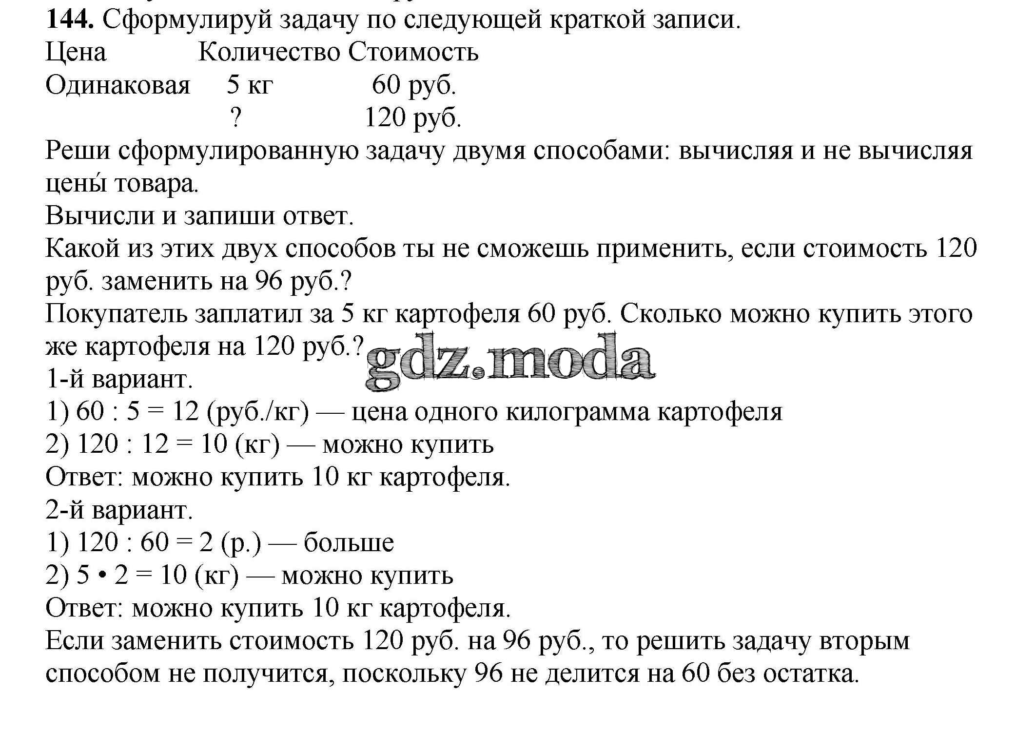 ОТВЕТ на задание № 144 Учебник по Математике 4 класс Чекин Перспективная начальная школа