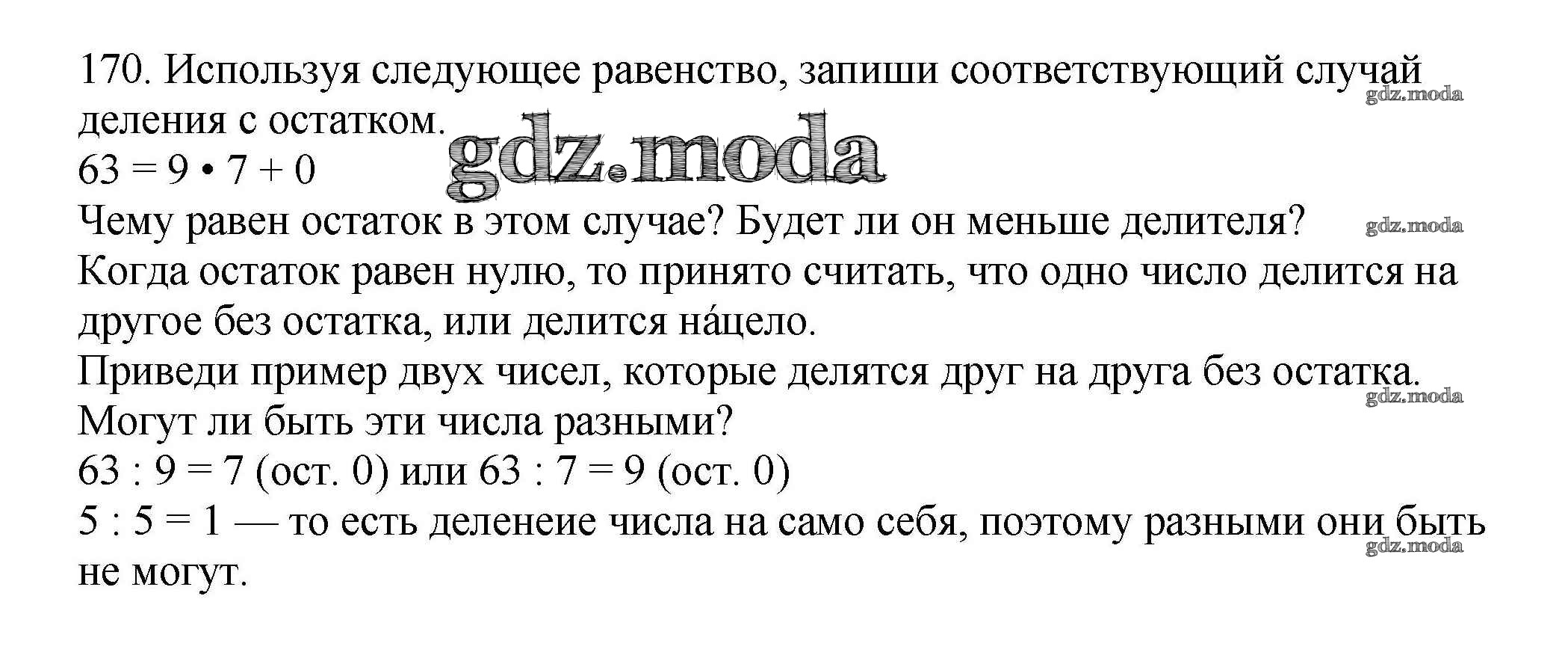 ОТВЕТ на задание № 170 Учебник по Математике 4 класс Чекин Перспективная начальная школа