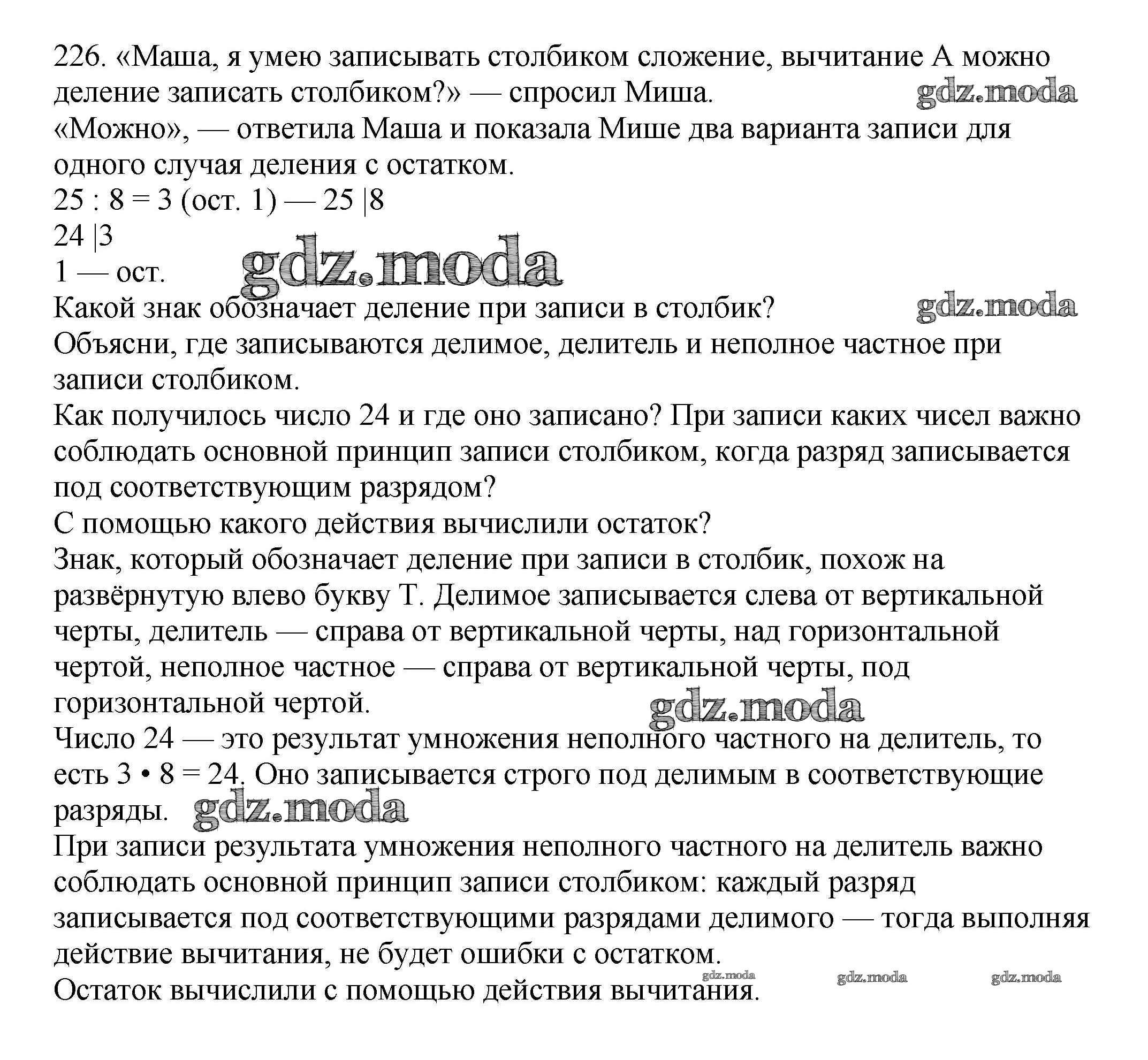 ОТВЕТ на задание № 226 Учебник по Математике 4 класс Чекин Перспективная начальная школа