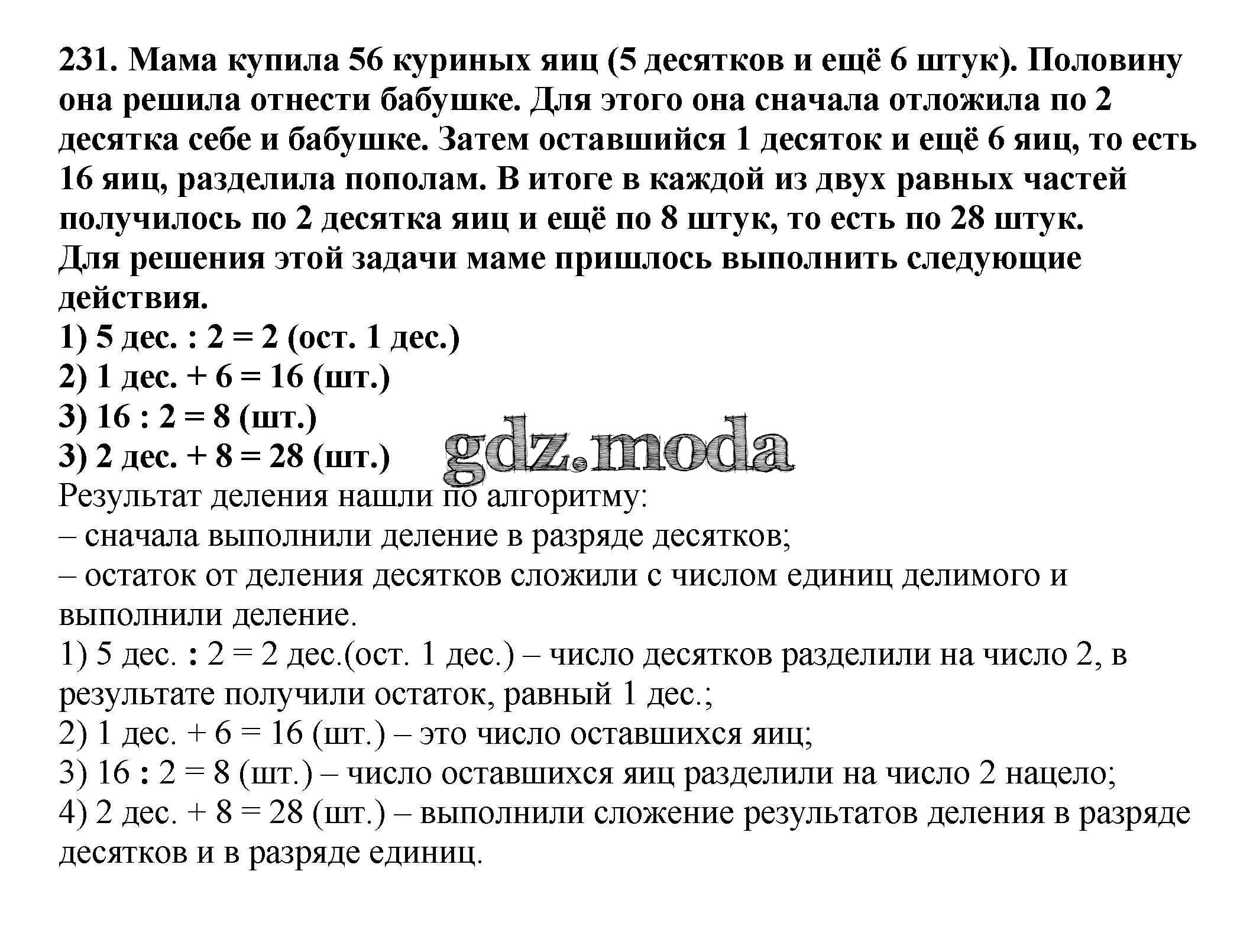 ОТВЕТ на задание № 231 Учебник по Математике 4 класс Чекин Перспективная начальная школа
