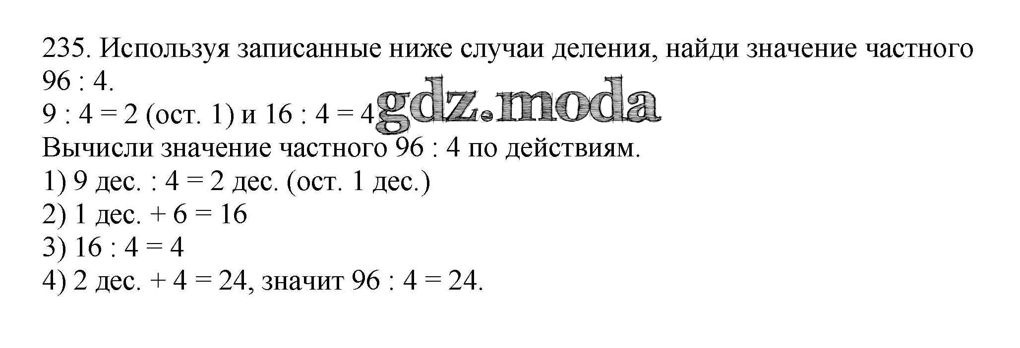 ОТВЕТ на задание № 235 Учебник по Математике 4 класс Чекин Перспективная начальная школа