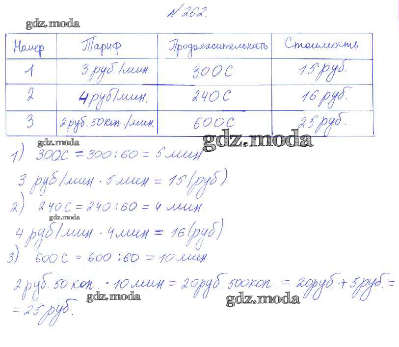 ОТВЕТ на задание № 262 Учебник по Математике 4 класс Чекин Перспективная начальная школа