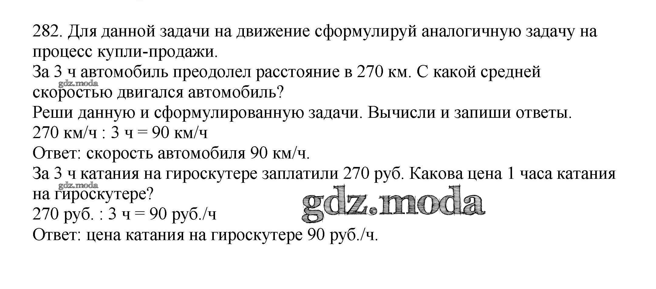 ОТВЕТ на задание № 282 Учебник по Математике 4 класс Чекин Перспективная начальная школа