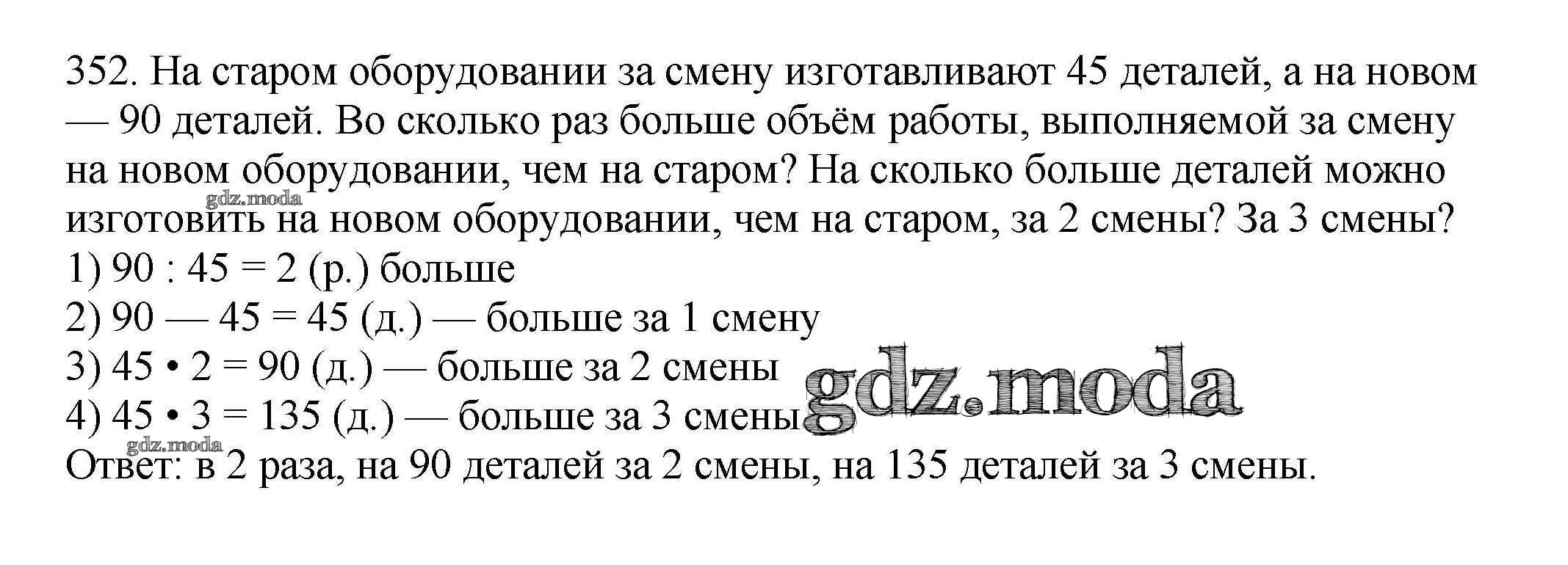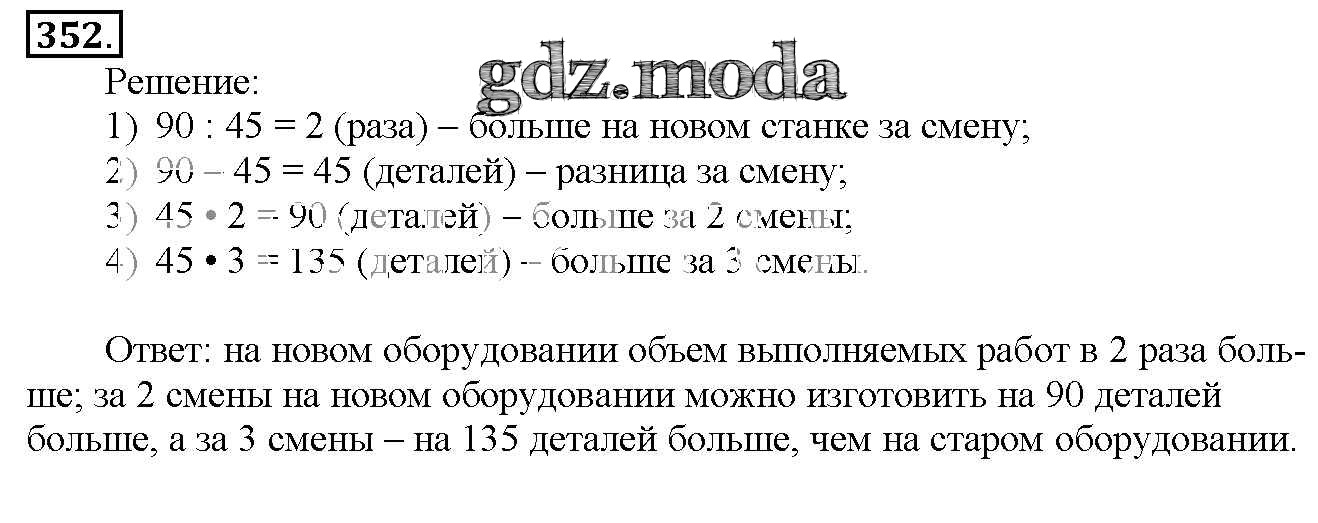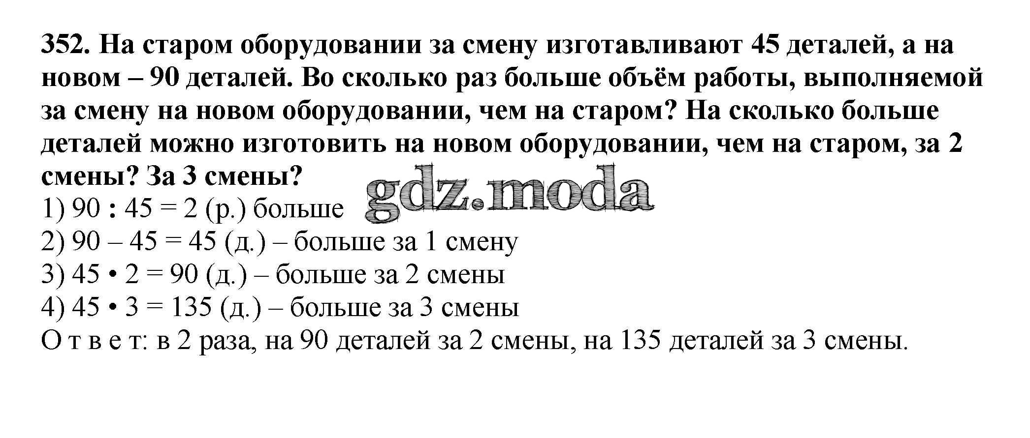 ОТВЕТ на задание № 352 Учебник по Математике 4 класс Чекин Перспективная начальная школа