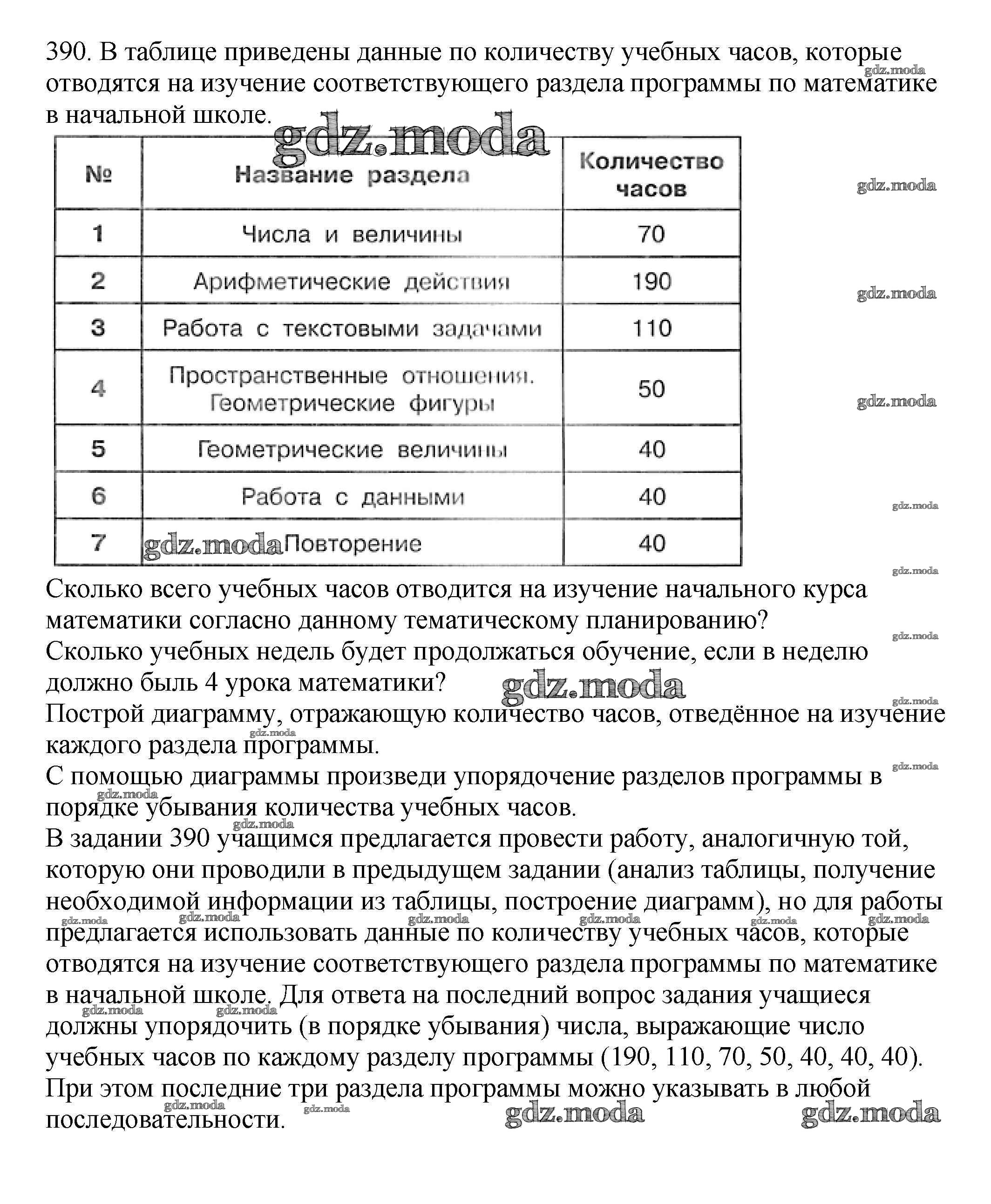 ОТВЕТ на задание № 390 Учебник по Математике 4 класс Чекин Перспективная начальная школа