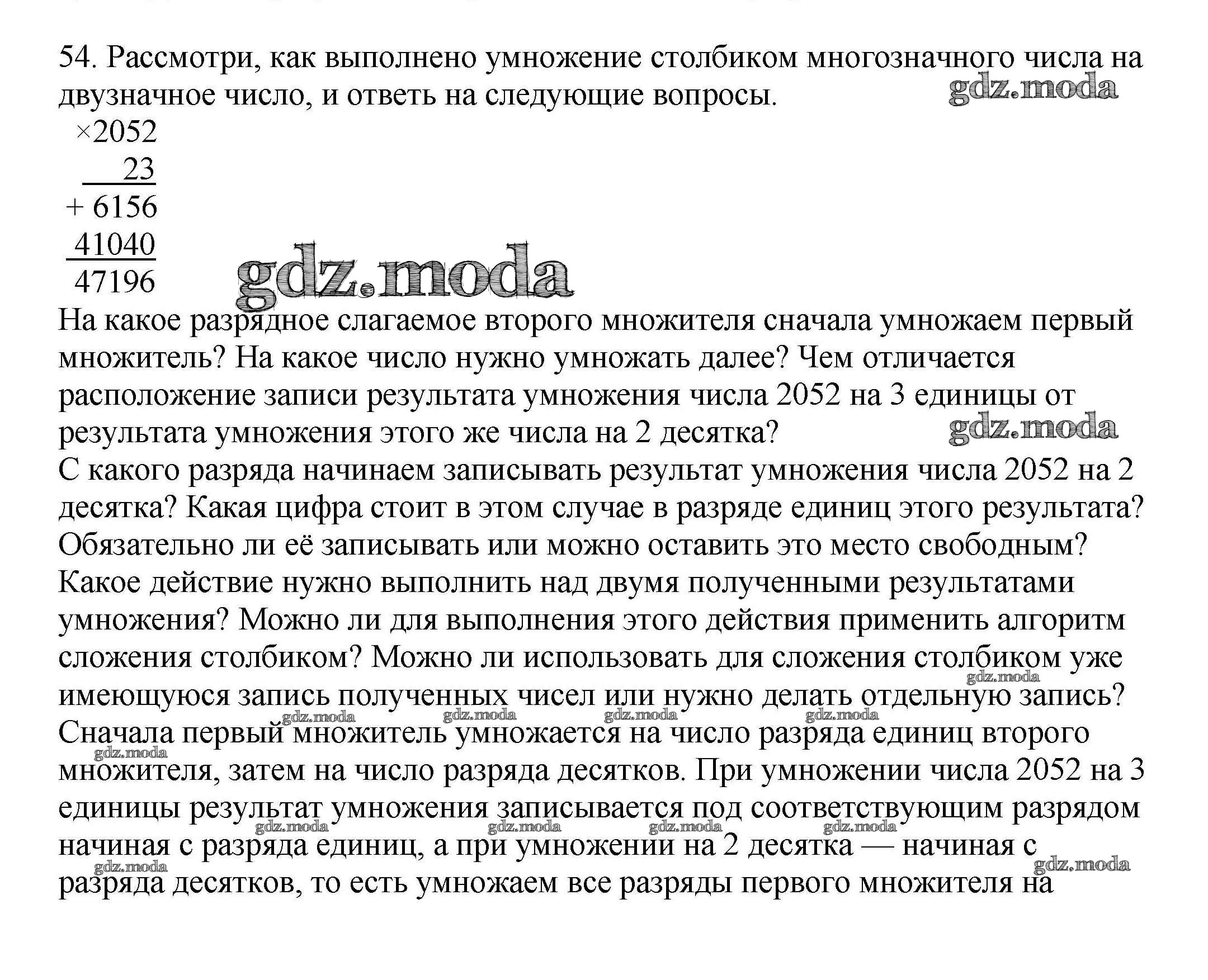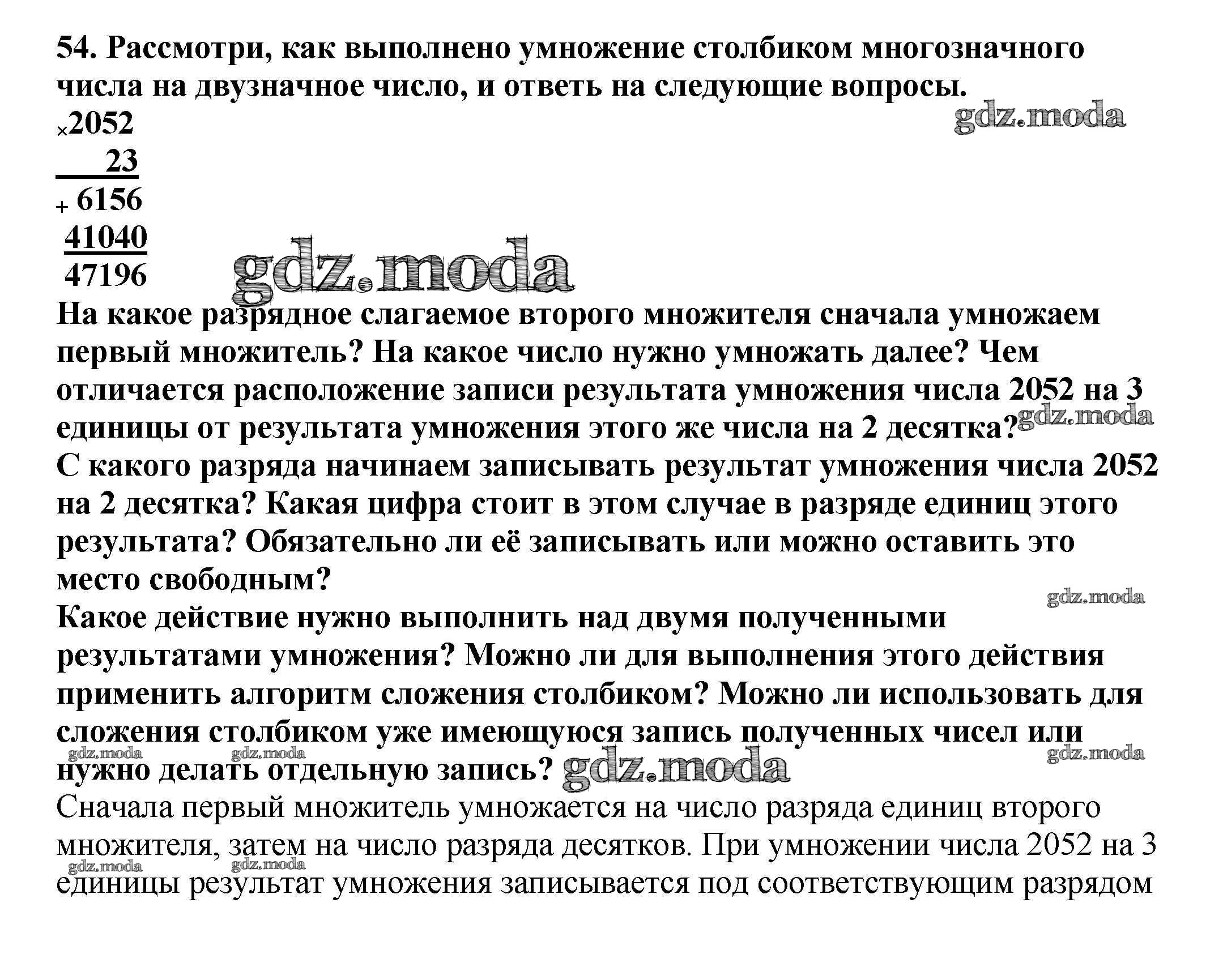 ОТВЕТ на задание № 54 Учебник по Математике 4 класс Чекин Перспективная начальная школа