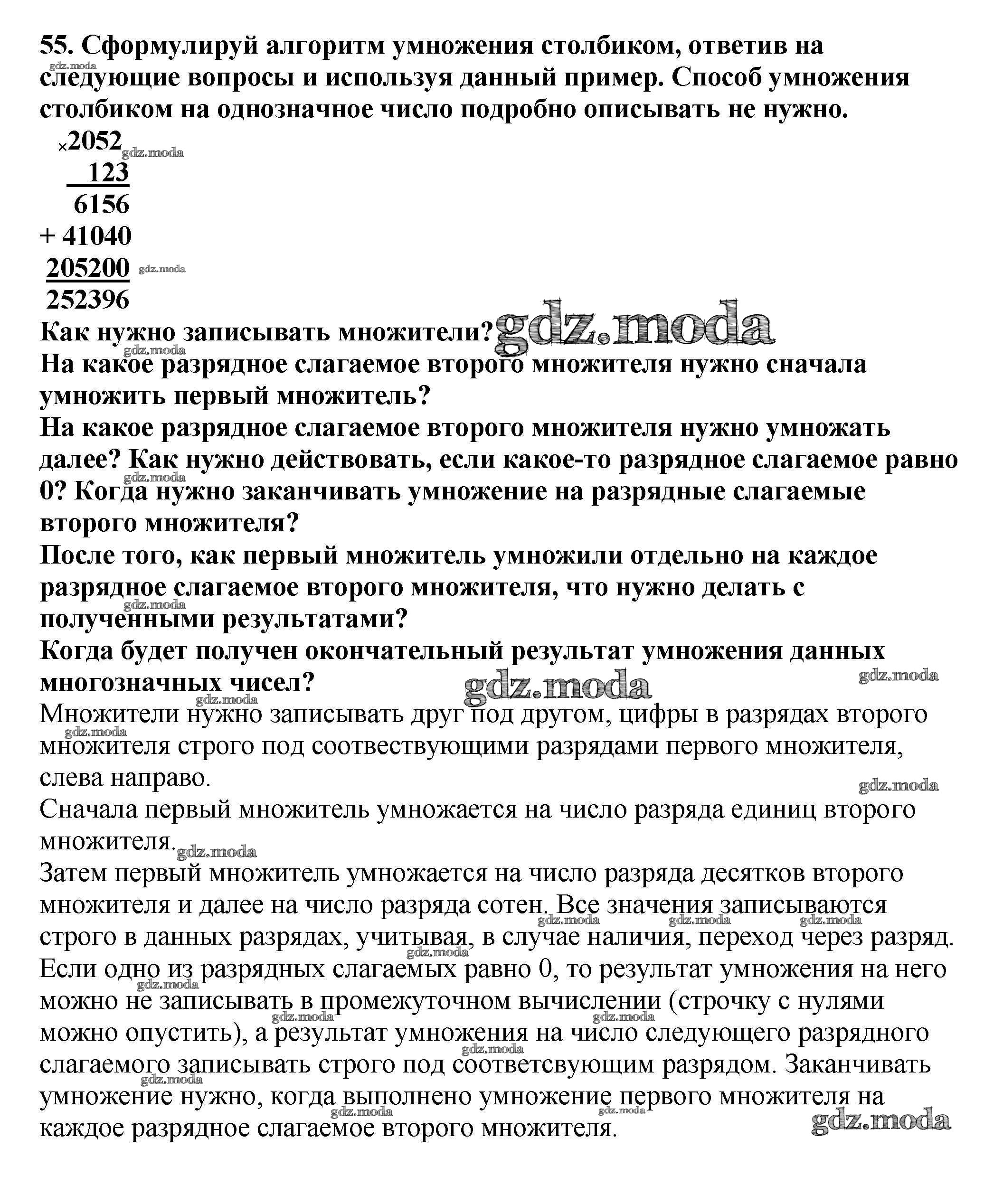 ОТВЕТ на задание № 55 Учебник по Математике 4 класс Чекин Перспективная начальная школа
