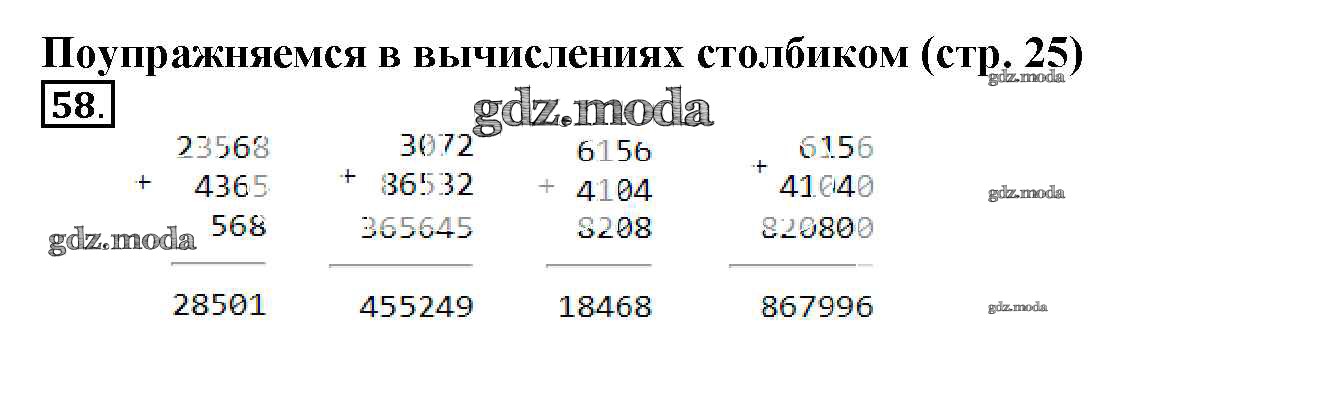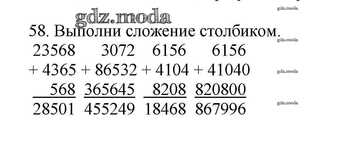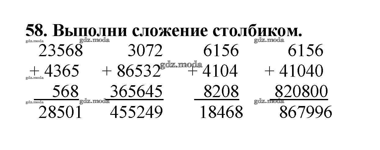 ОТВЕТ на задание № 58 Учебник по Математике 4 класс Чекин Перспективная начальная школа