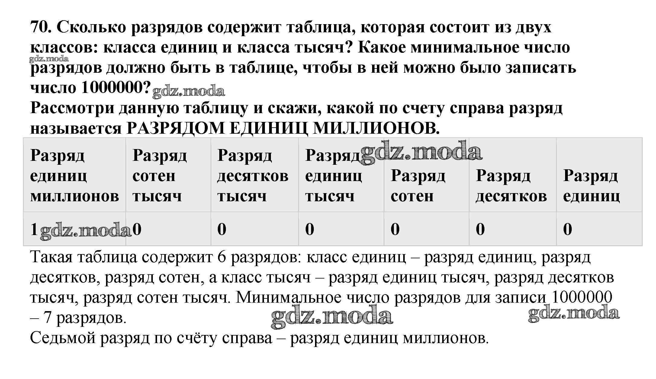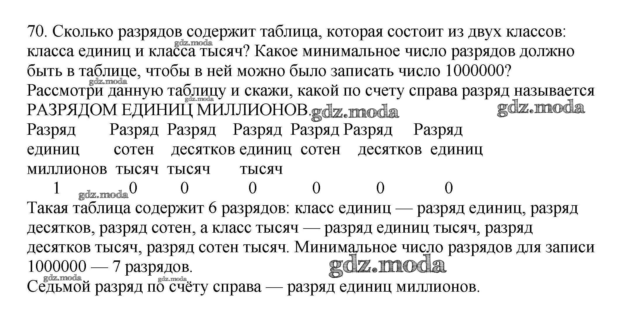 ОТВЕТ на задание № 70 Учебник по Математике 4 класс Чекин Перспективная начальная школа
