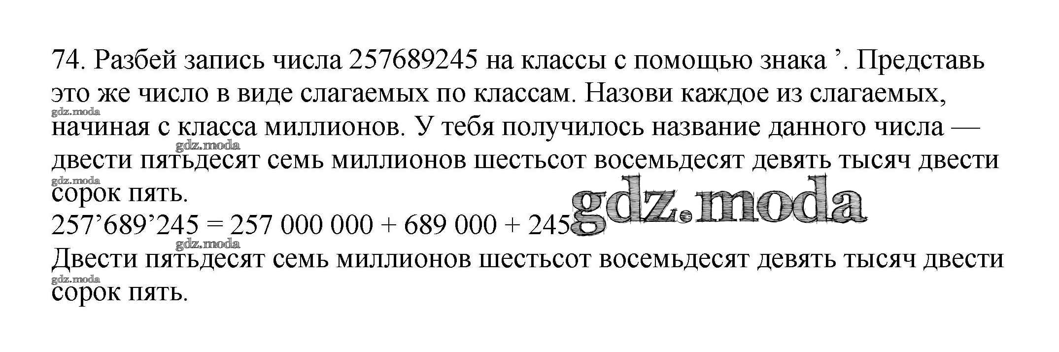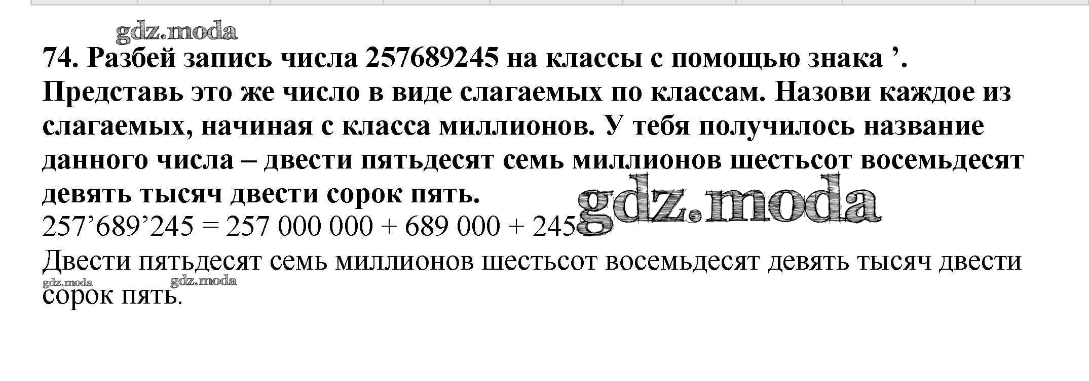 ОТВЕТ на задание № 74 Учебник по Математике 4 класс Чекин Перспективная начальная школа