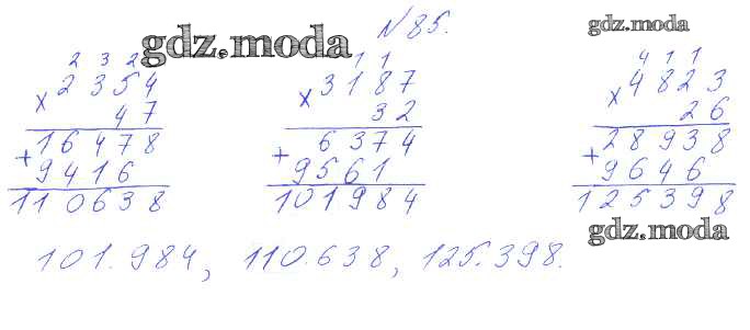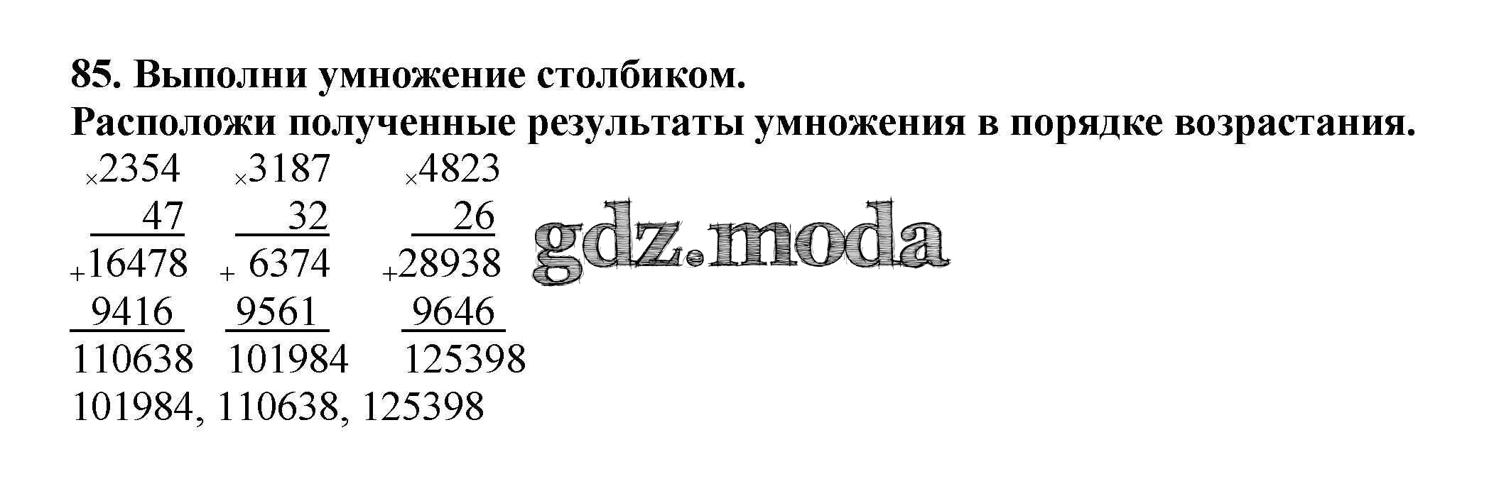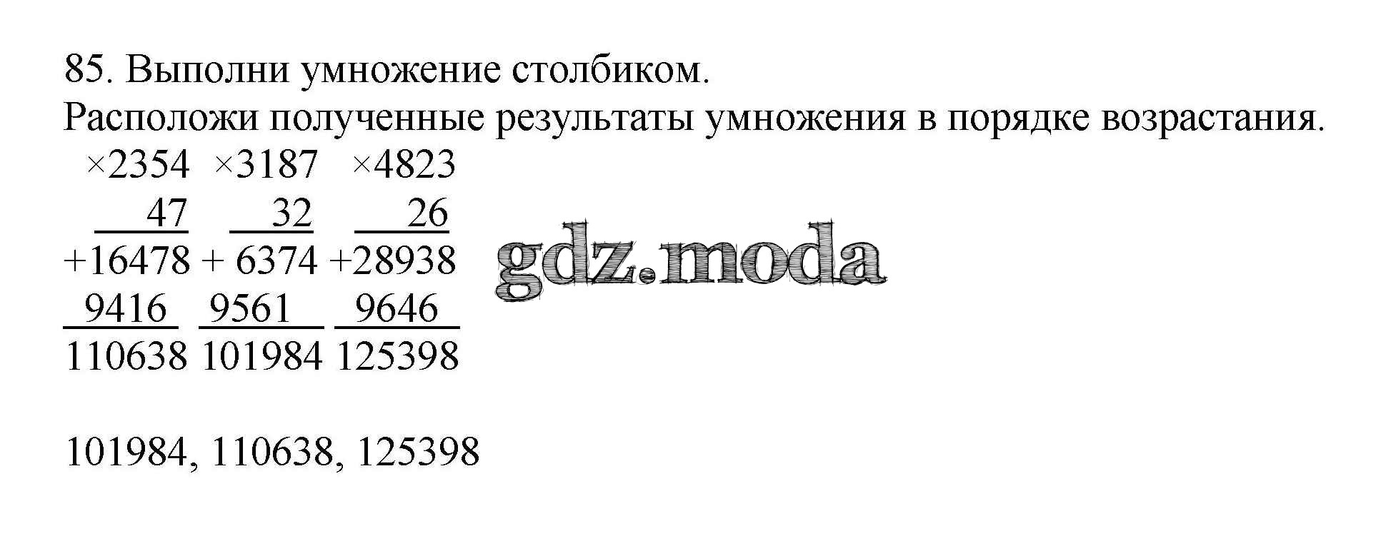 ОТВЕТ на задание № 85 Учебник по Математике 4 класс Чекин Перспективная начальная школа