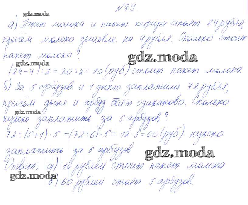 ОТВЕТ на задание № 89 Учебник по Математике 4 класс Чекин Перспективная начальная школа