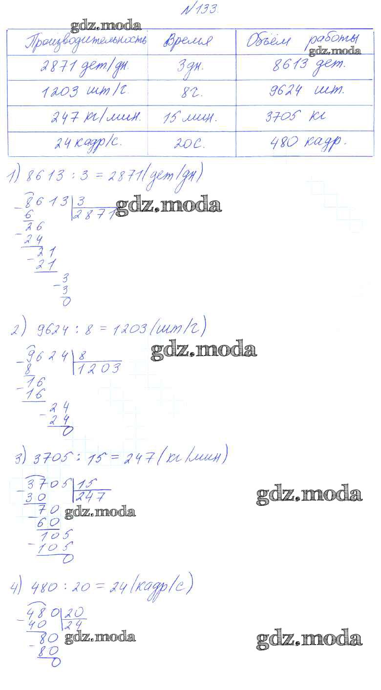 ОТВЕТ на задание № 133 Учебник по Математике 4 класс Чекин Перспективная начальная школа