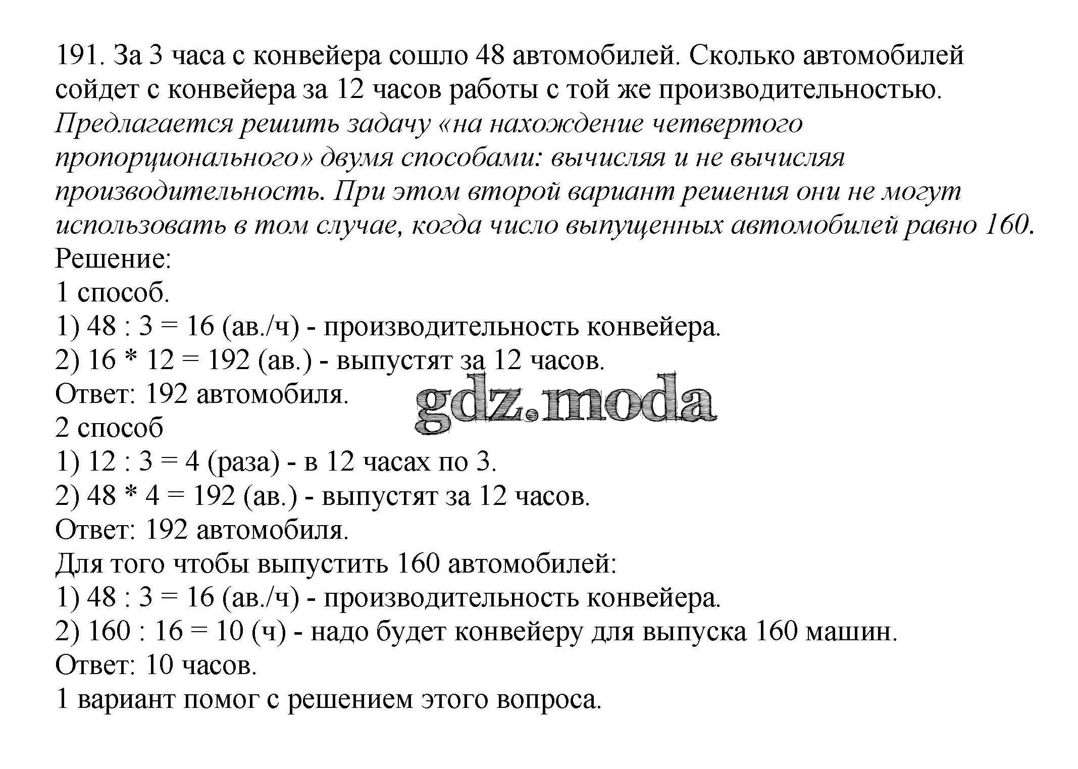 ГДЗ решение к заданию № 191 Математика 4 класс Чекин А.Л. Академкнига 2012 Часть 1, Часть 2 ФГОС бесплатно на гдз.мода!