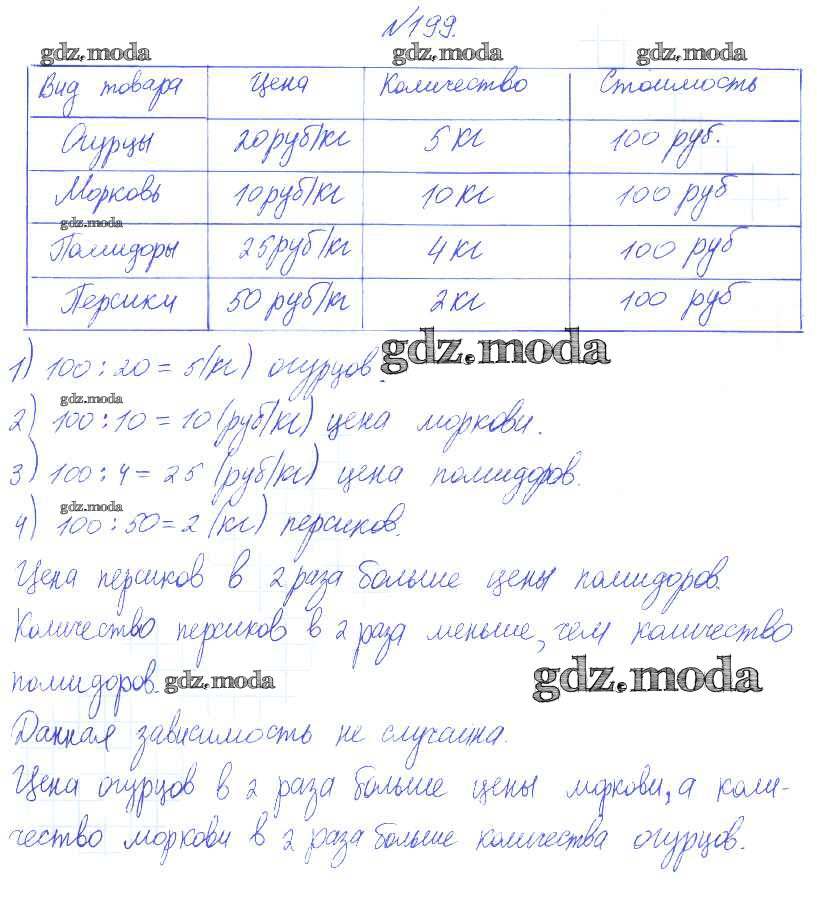 ОТВЕТ на задание № 199 Учебник по Математике 4 класс Чекин Перспективная начальная школа
