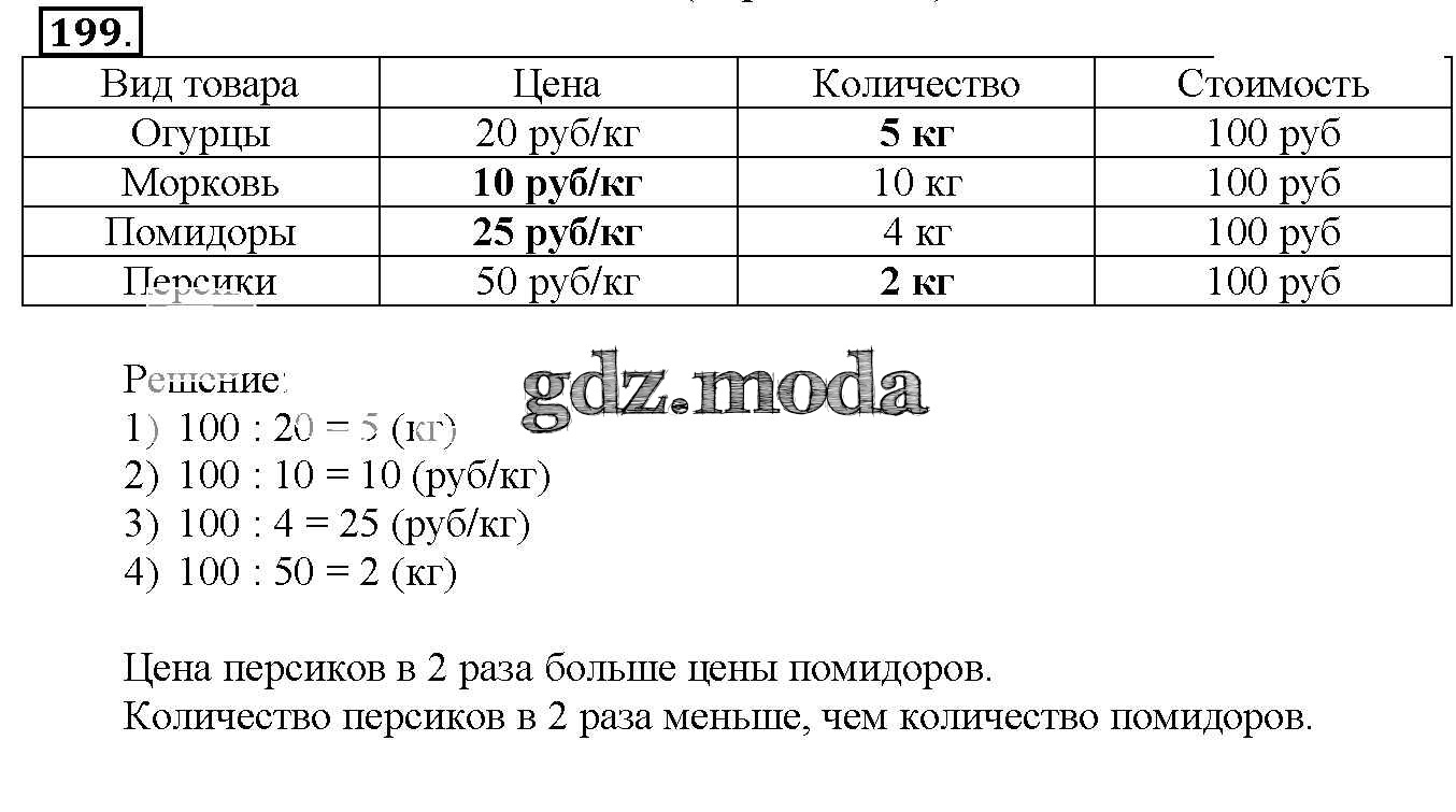 ГДЗ решение к заданию № 199 Математика 4 класс Чекин А.Л. Академкнига 2012 Часть 1, Часть 2 ФГОС бесплатно на гдз.мода!