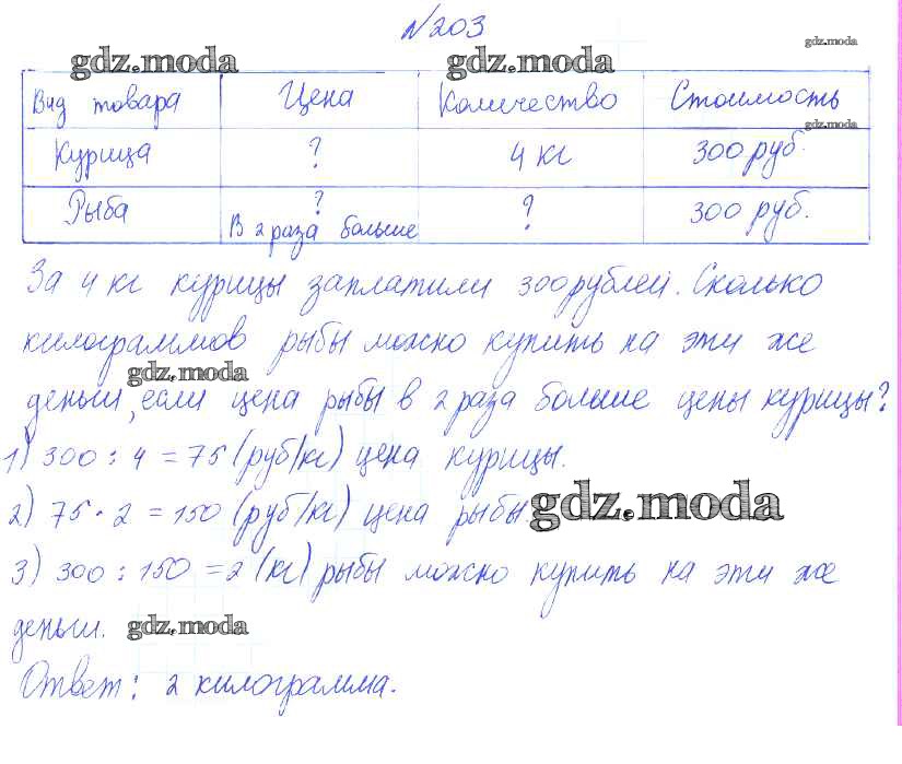 ОТВЕТ на задание № 203 Учебник по Математике 4 класс Чекин Перспективная начальная школа