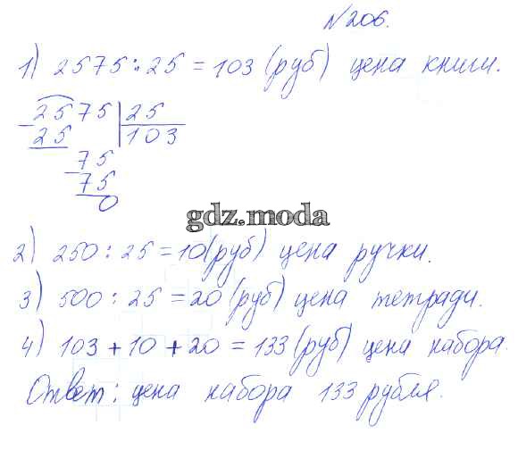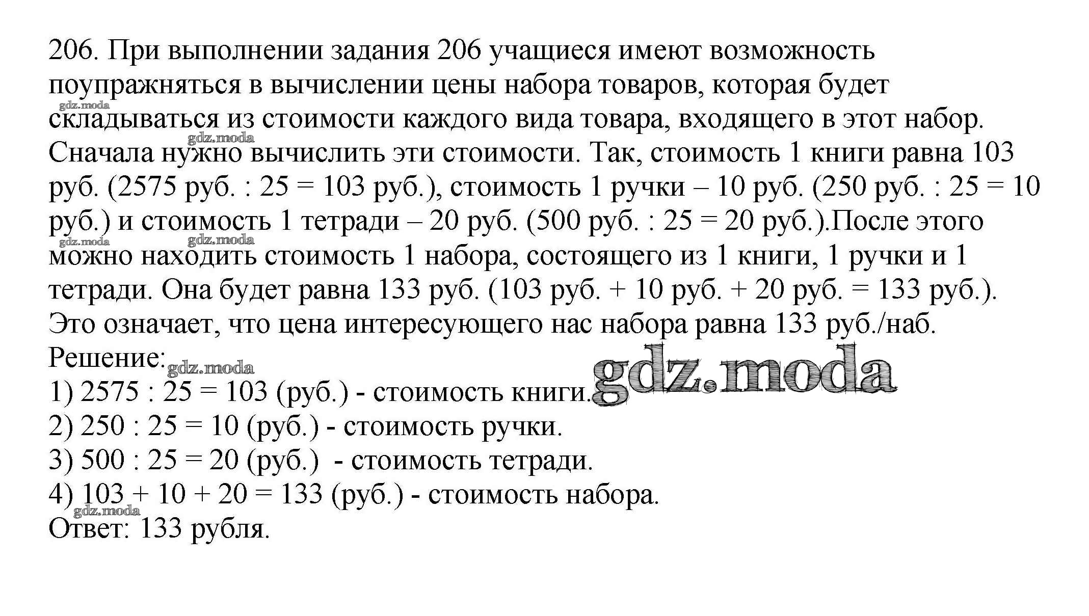 ОТВЕТ на задание № 206 Учебник по Математике 4 класс Чекин Перспективная начальная школа