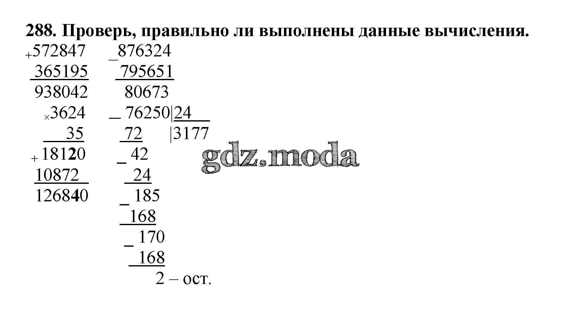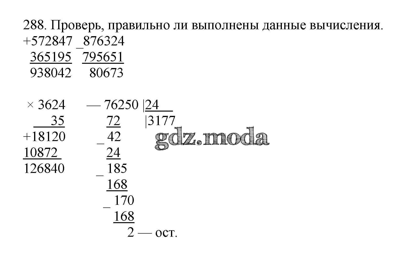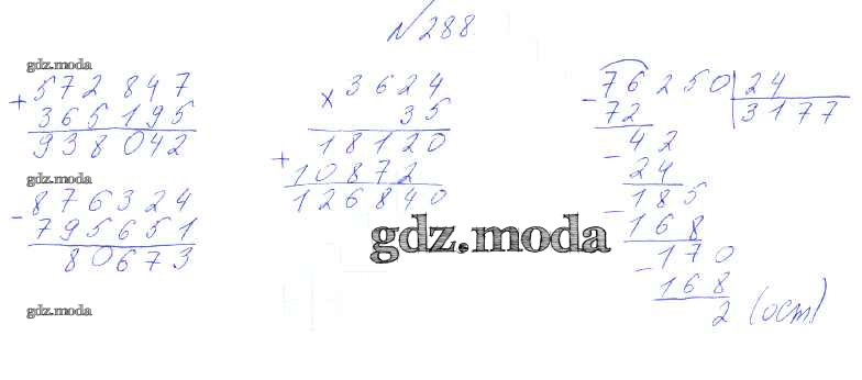 ОТВЕТ на задание № 288 Учебник по Математике 4 класс Чекин Перспективная начальная школа
