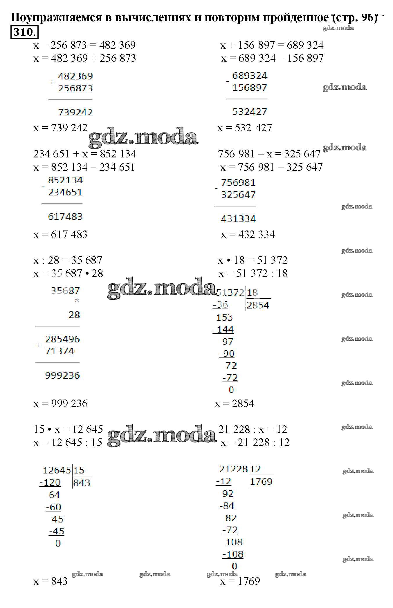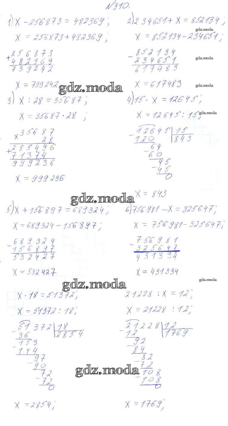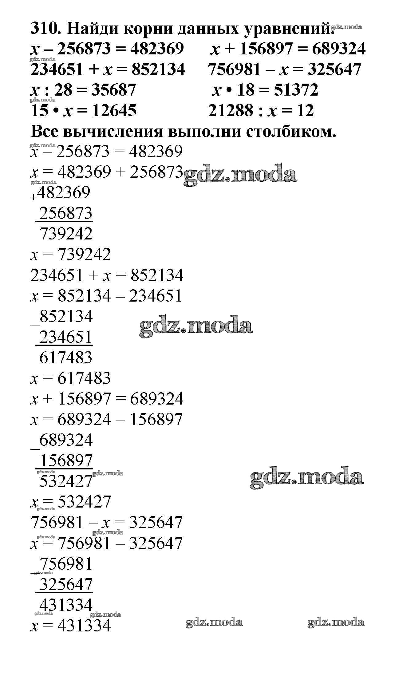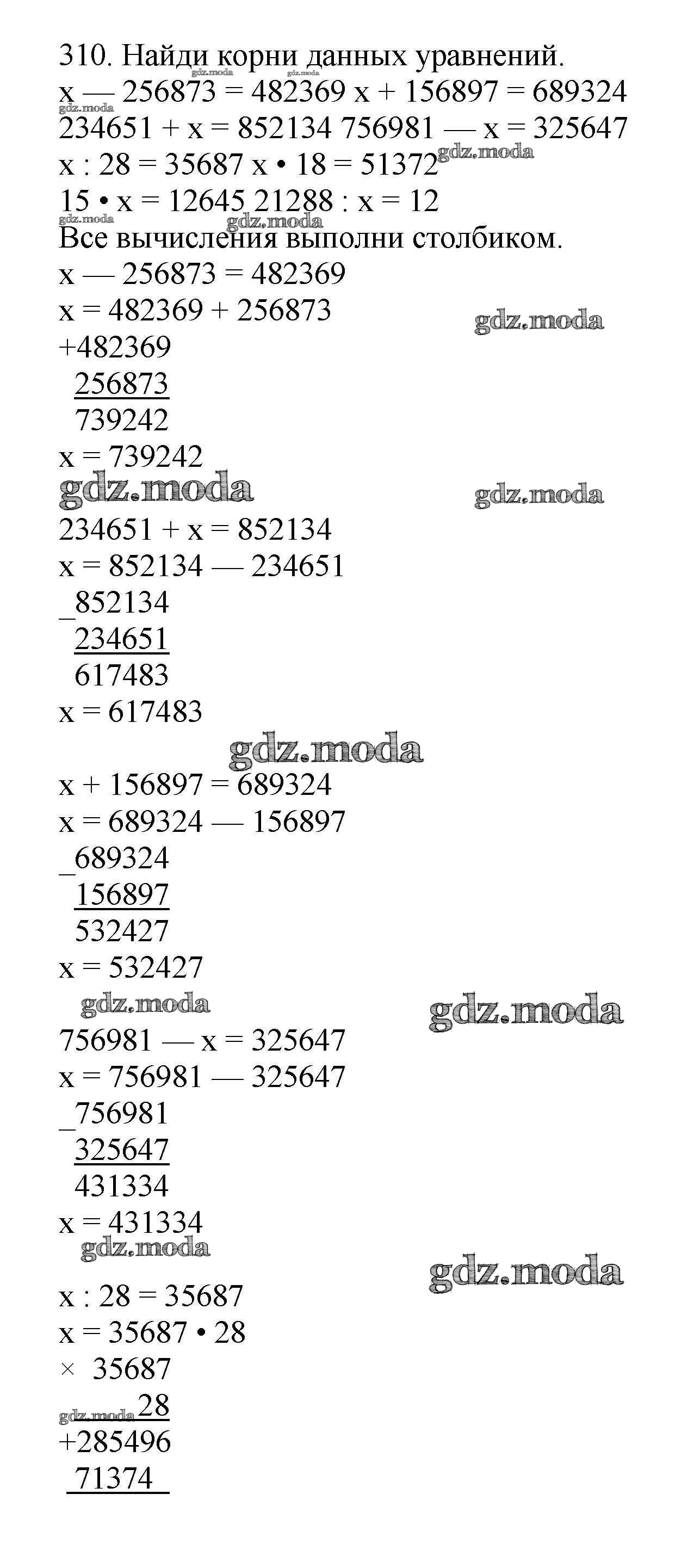 ОТВЕТ на задание № 310 Учебник по Математике 4 класс Чекин Перспективная начальная школа