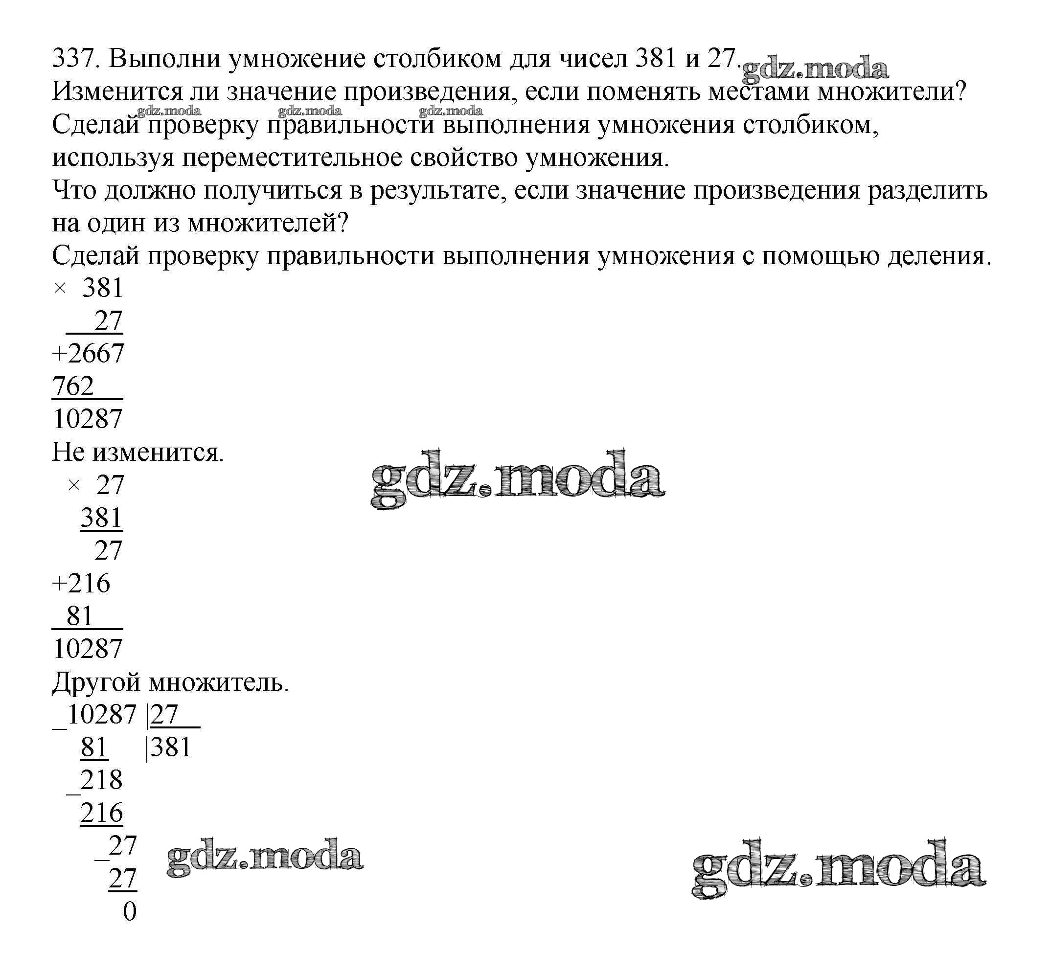 ОТВЕТ на задание № 337 Учебник по Математике 4 класс Чекин Перспективная начальная школа