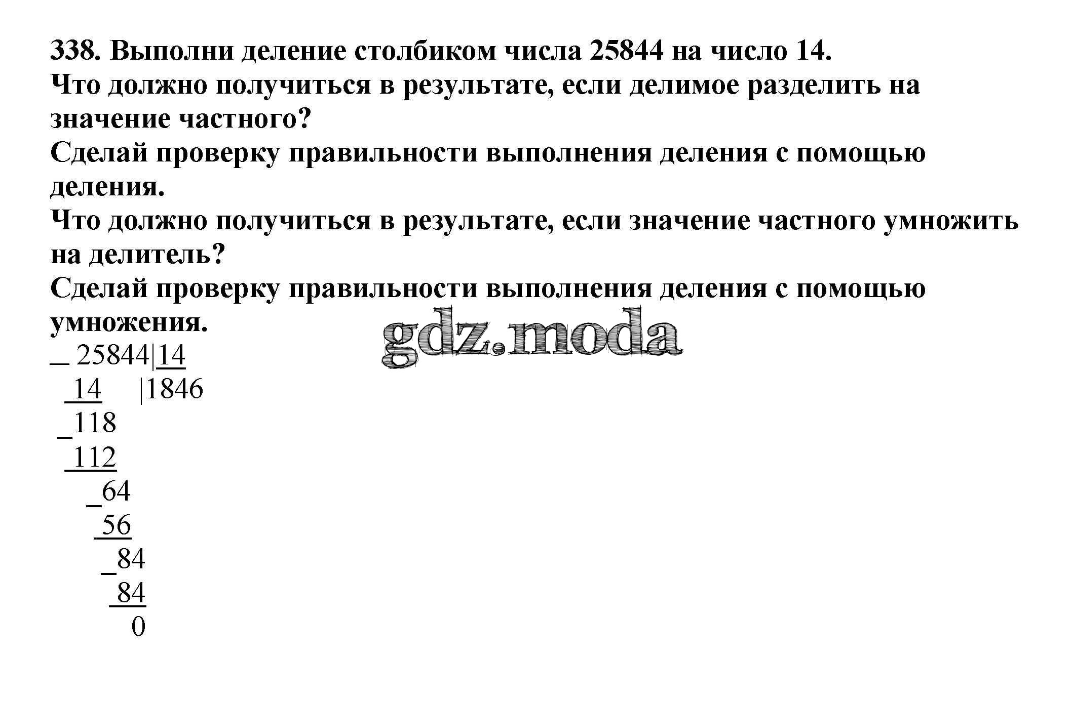 ОТВЕТ на задание № 338 Учебник по Математике 4 класс Чекин Перспективная начальная школа