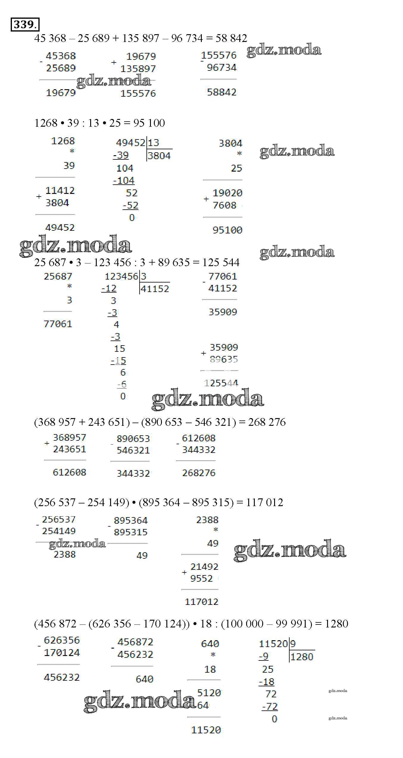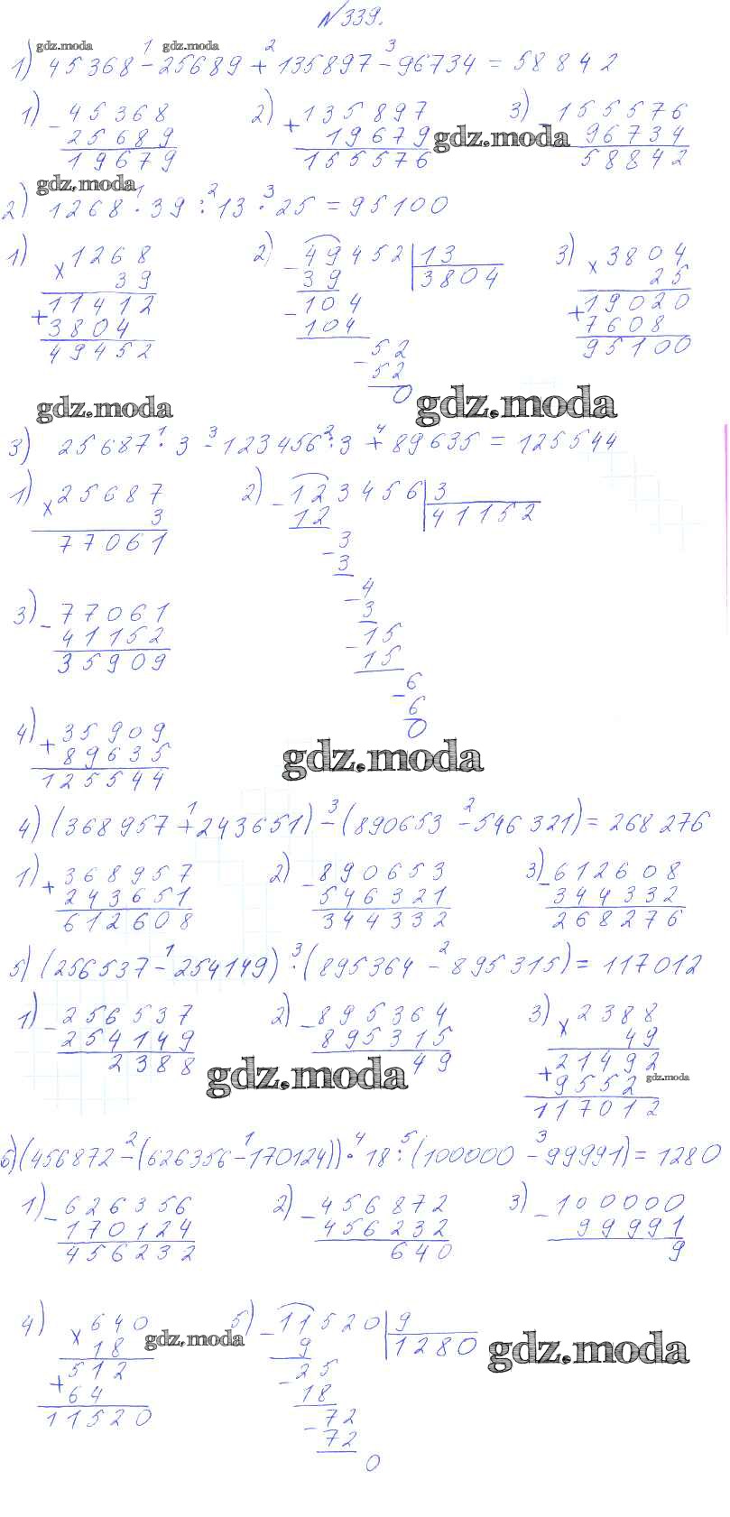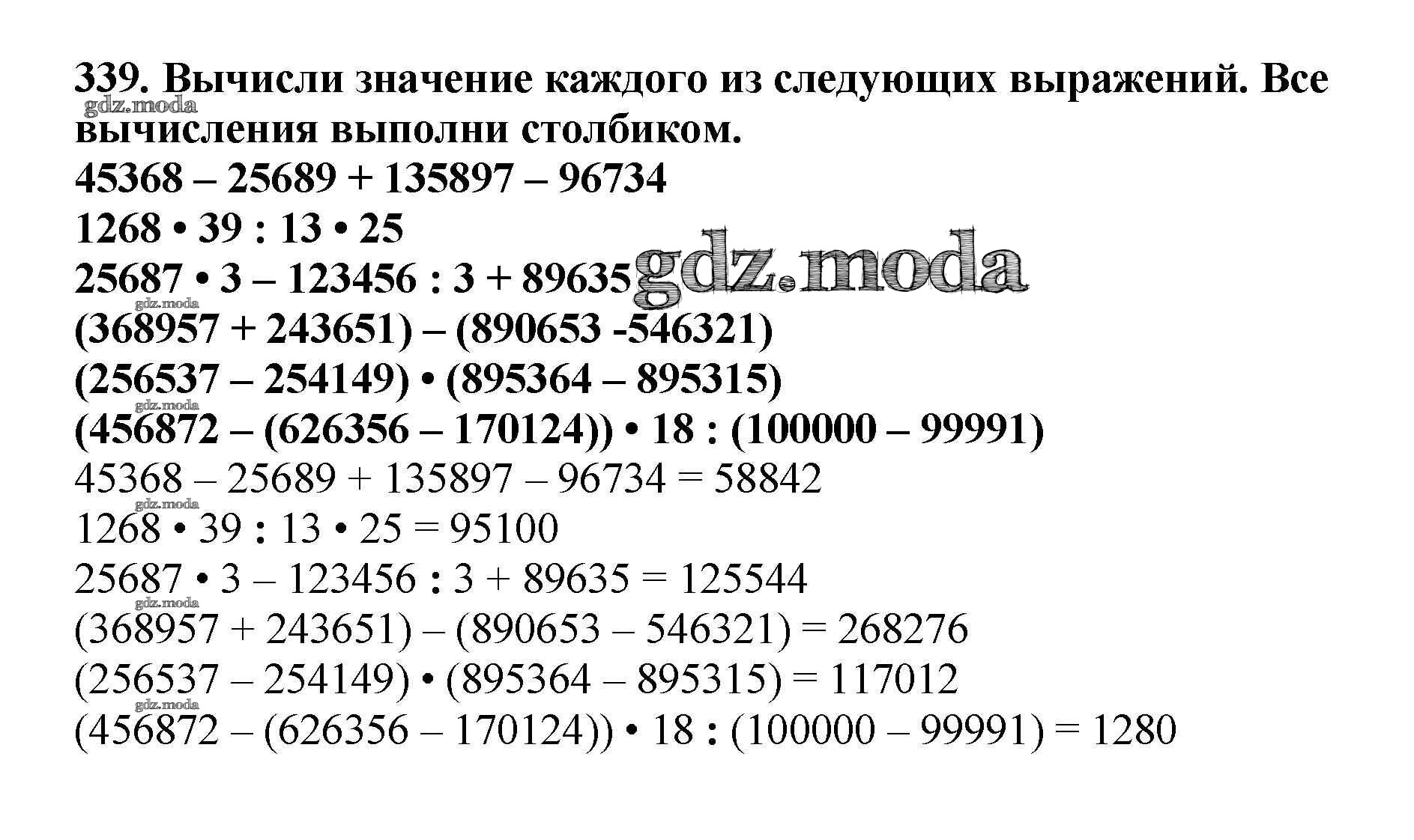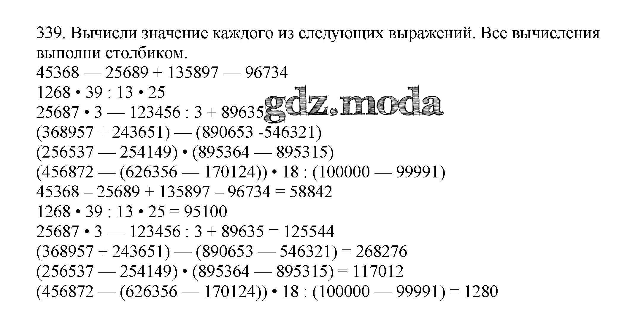 ОТВЕТ на задание № 339 Учебник по Математике 4 класс Чекин Перспективная начальная школа