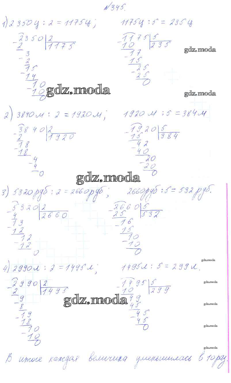 ОТВЕТ на задание № 345 Учебник по Математике 4 класс Чекин Перспективная начальная школа