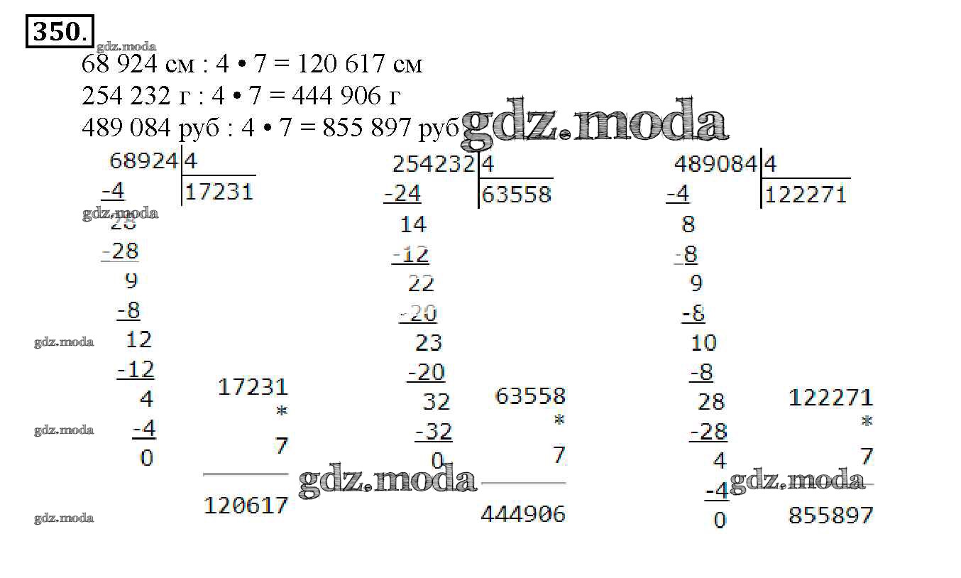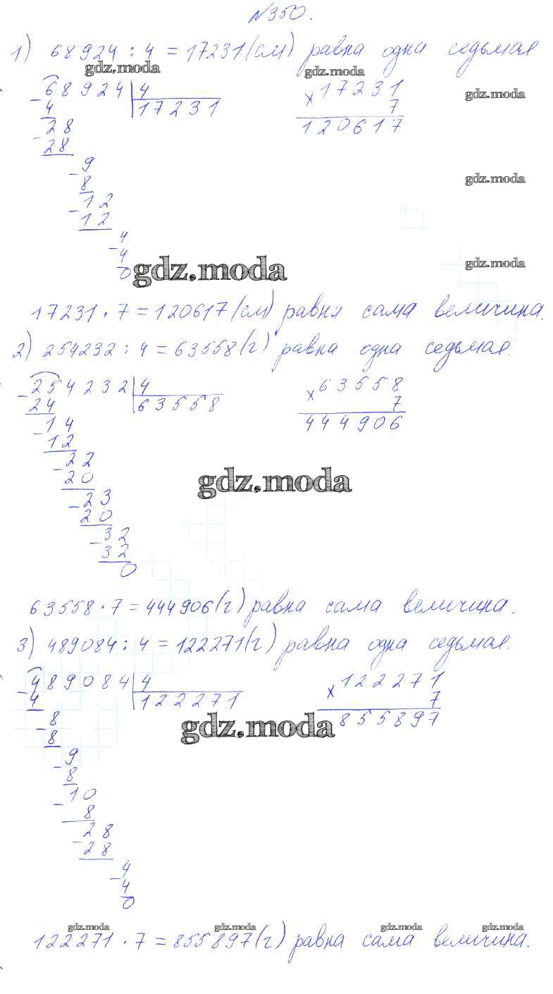 ОТВЕТ на задание № 350 Учебник по Математике 4 класс Чекин Перспективная начальная школа