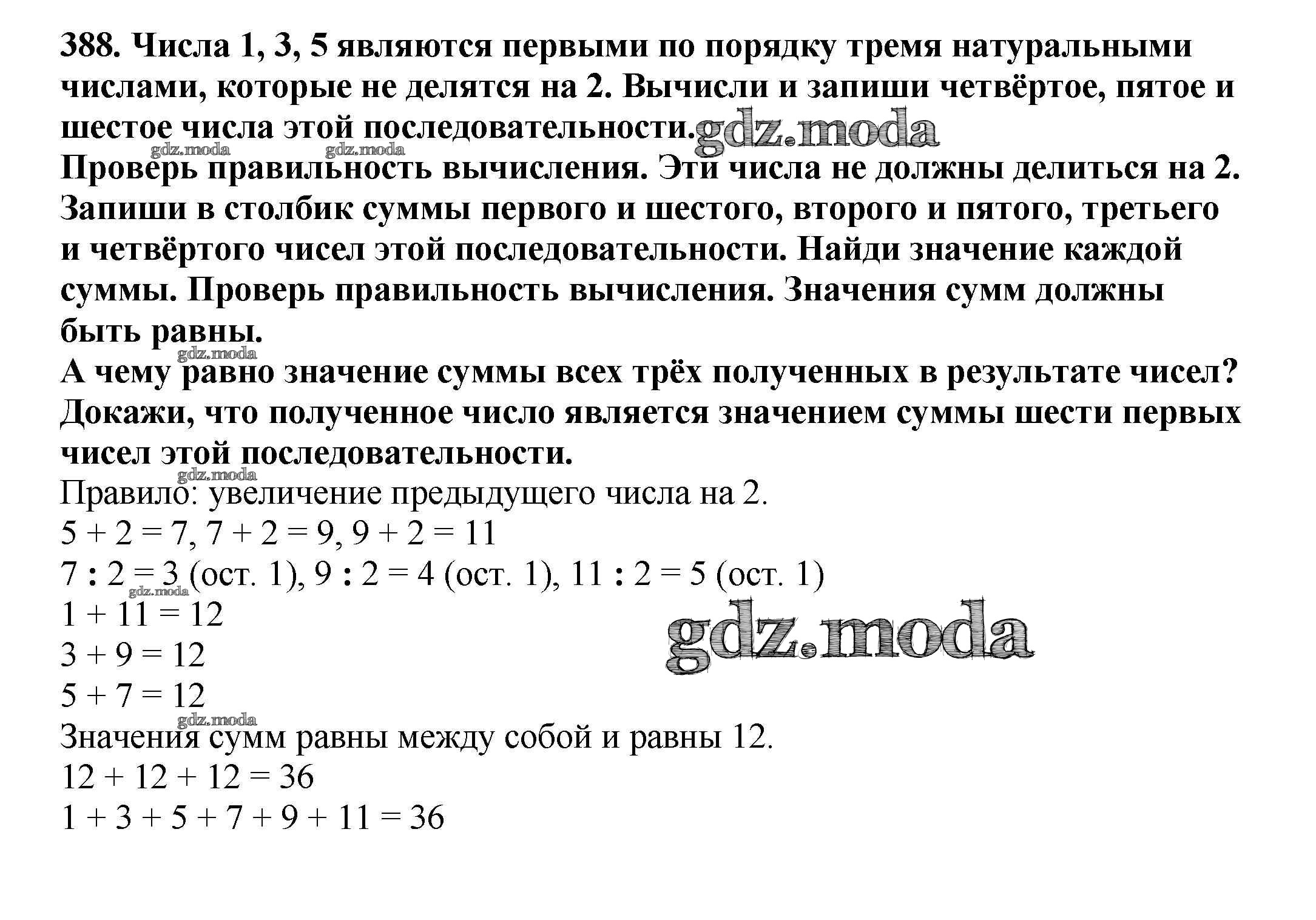 ОТВЕТ на задание № 388 Учебник по Математике 4 класс Чекин Перспективная начальная школа