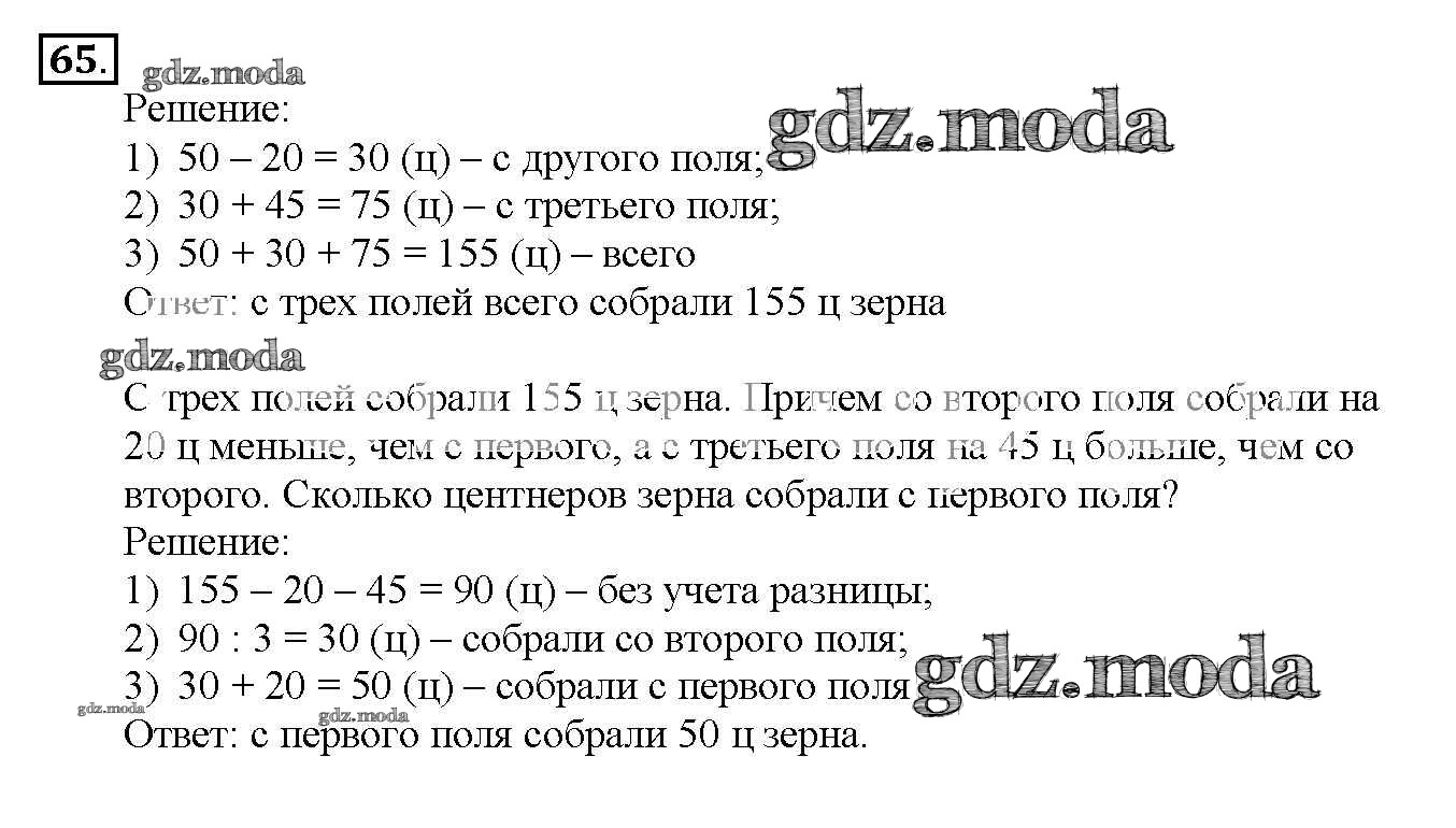 ГДЗ решение к заданию № 65 Математика 4 класс Чекин А.Л. Академкнига 2012 Часть 1, Часть 2 ФГОС бесплатно на гдз.мода!