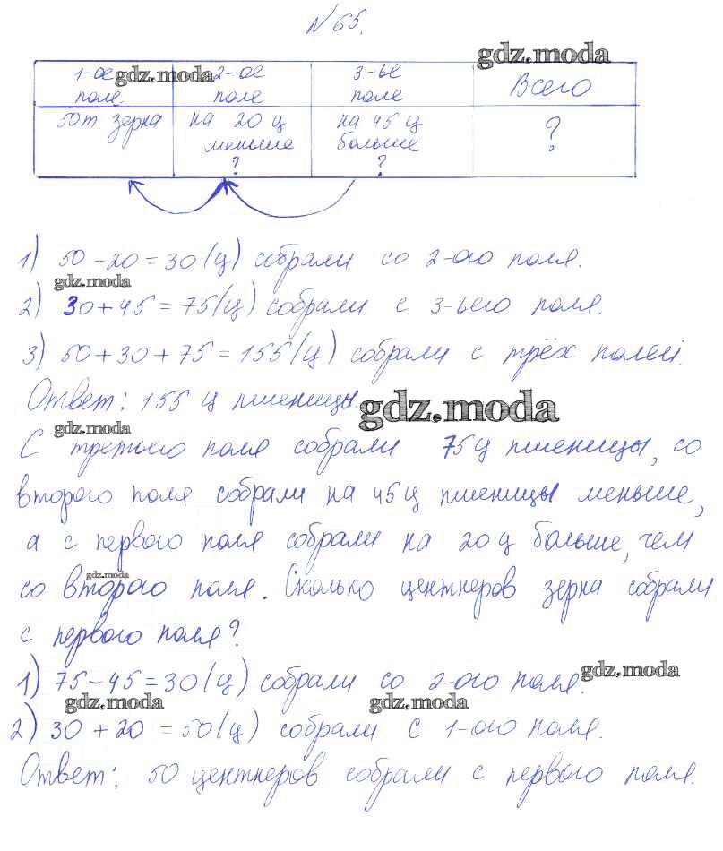 ОТВЕТ на задание № 65 Учебник по Математике 4 класс Чекин Перспективная начальная школа