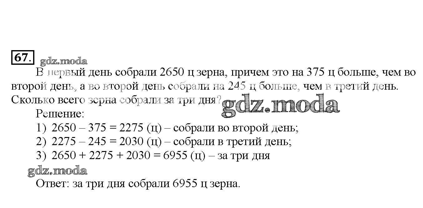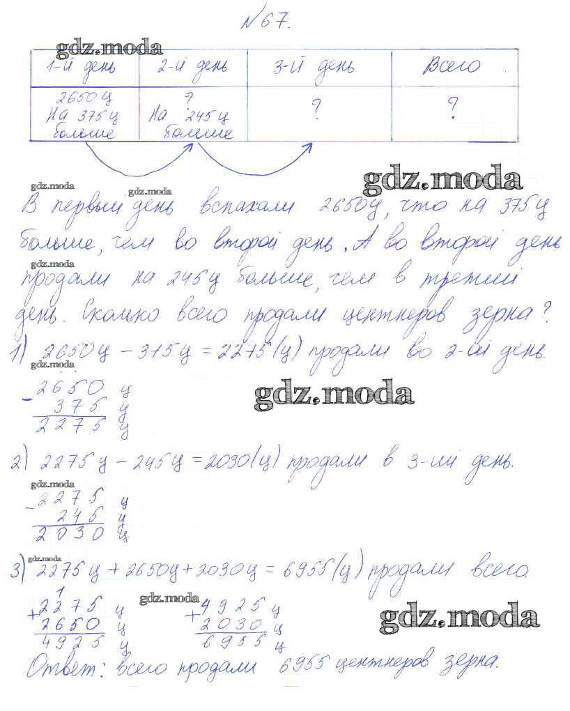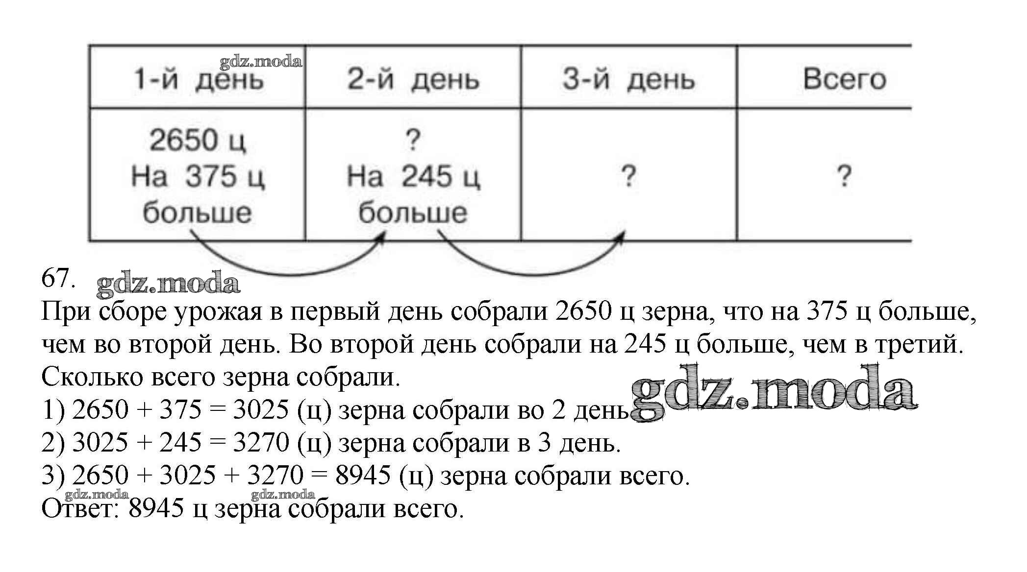 ОТВЕТ на задание № 67 Учебник по Математике 4 класс Чекин Перспективная начальная школа