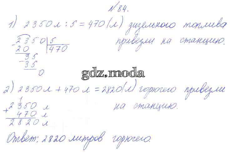 ОТВЕТ на задание № 84 Учебник по Математике 4 класс Чекин Перспективная начальная школа