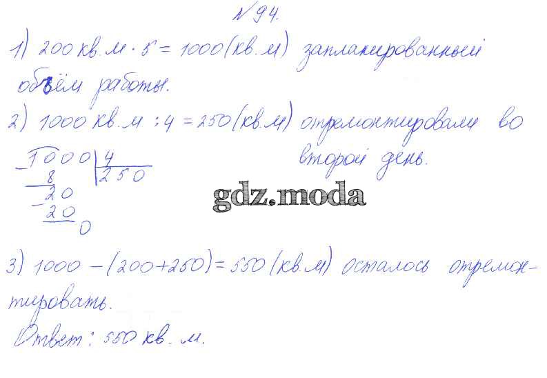 ОТВЕТ на задание № 94 Учебник по Математике 4 класс Чекин Перспективная начальная школа
