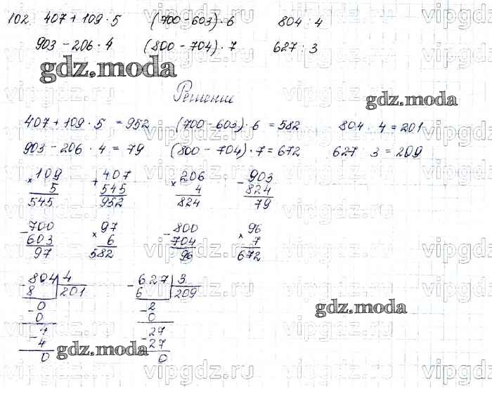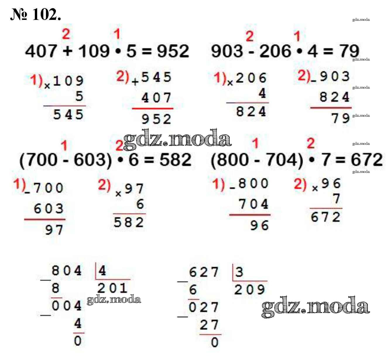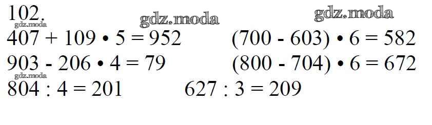 ОТВЕТ на задание № 102 Учебник по Математике 4 класс Моро Школа России