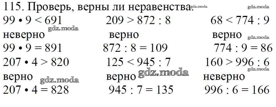 ОТВЕТ на задание № 115 Учебник по Математике 4 класс Моро Школа России