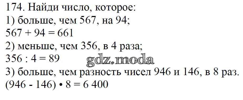 ОТВЕТ на задание № 174 Учебник по Математике 4 класс Моро Школа России