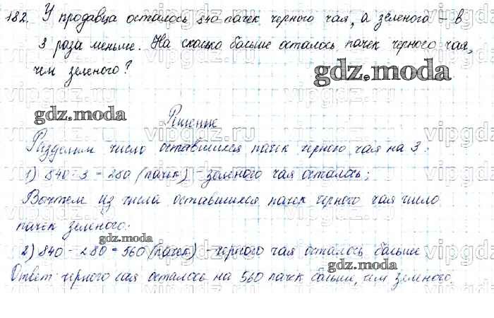 ОТВЕТ на задание № 182 Учебник по Математике 4 класс Моро Школа России
