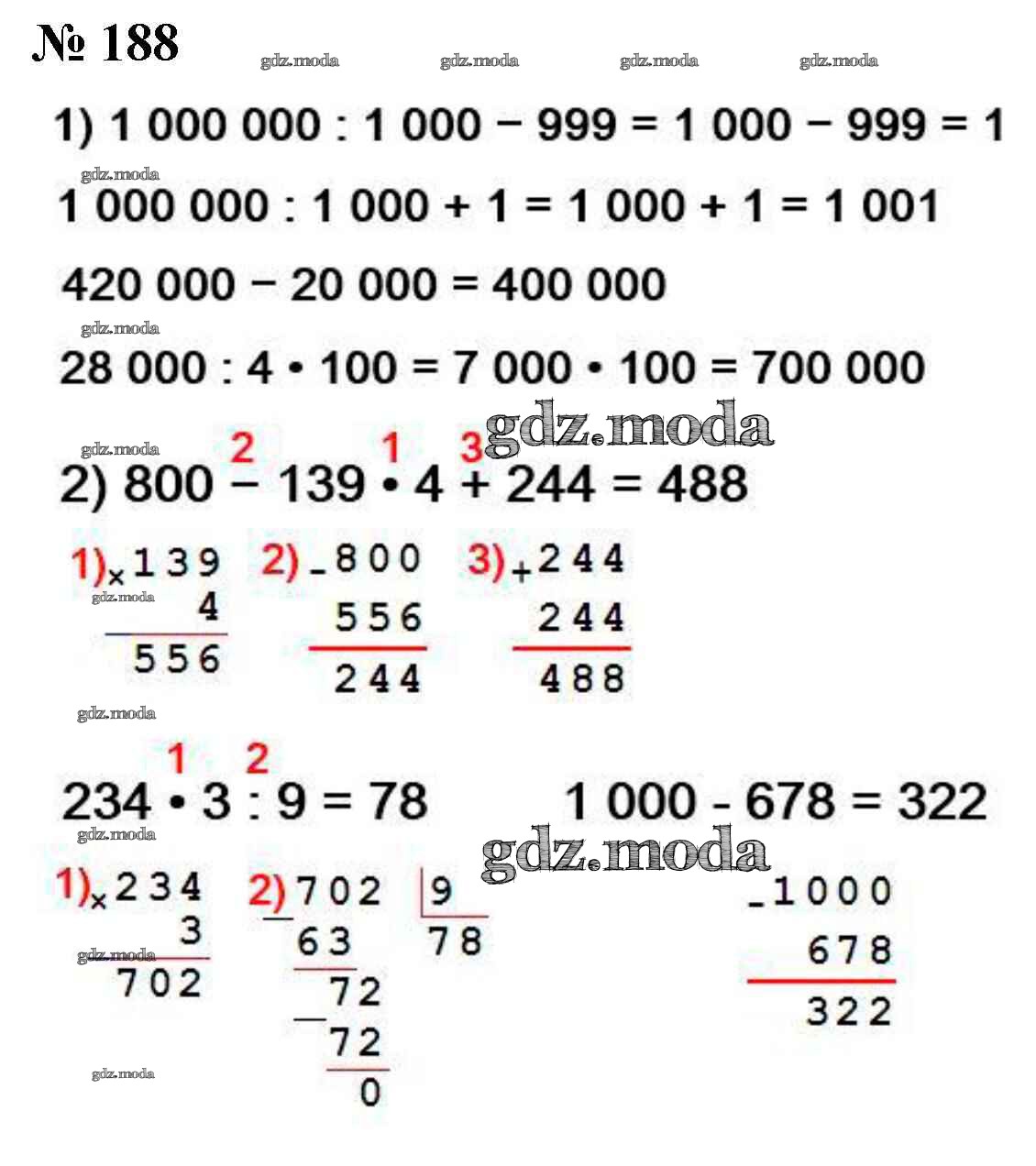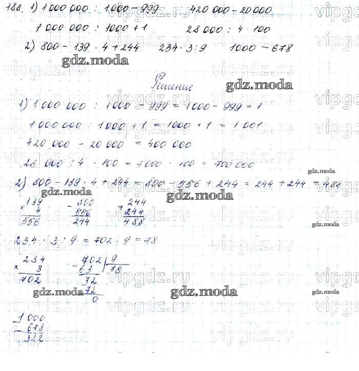 ОТВЕТ на задание № 188 Учебник по Математике 4 класс Моро Школа России