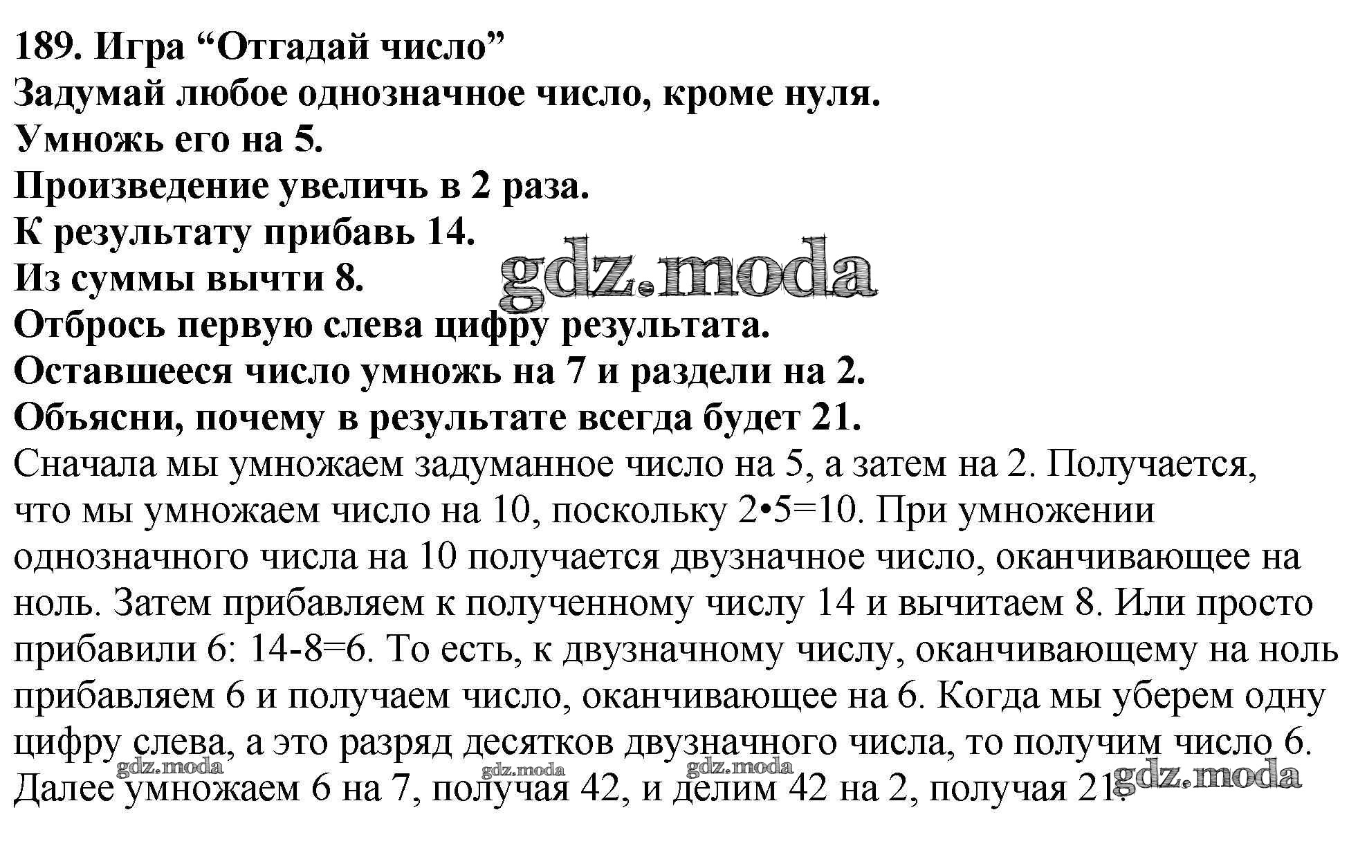 ОТВЕТ на задание № 189 Учебник по Математике 4 класс Моро Школа России