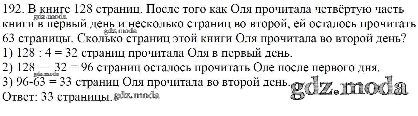 ОТВЕТ на задание № 192 Учебник по Математике 4 класс Моро Школа России